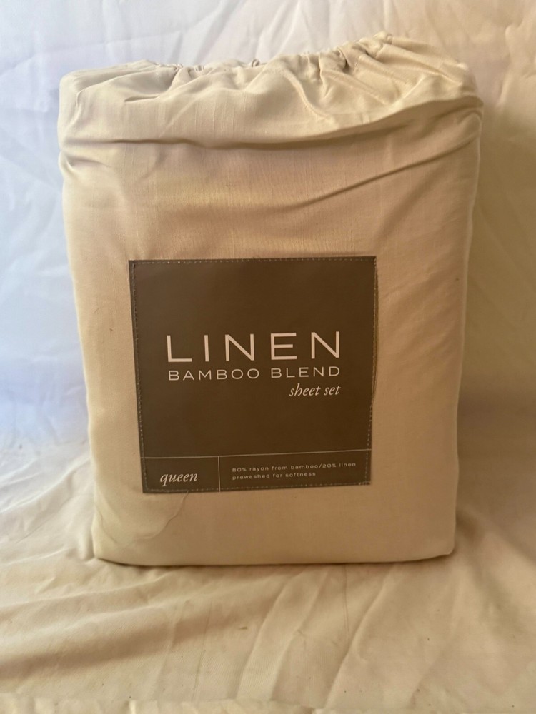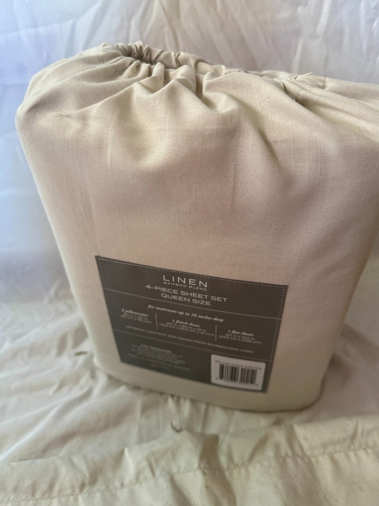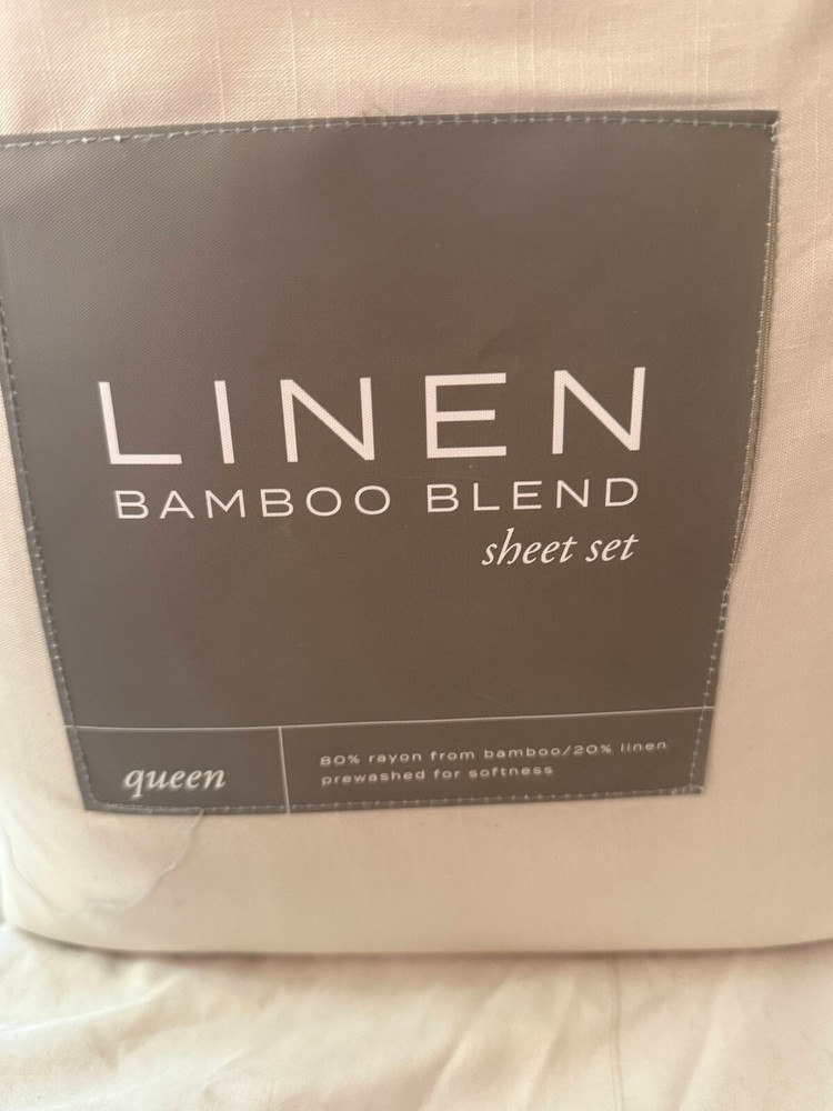 RETAIL PRICE $ 200 BEST PRICE GUARANTEED! This is guaranteed authentic. Brand: ienjoy Home Size: Queen Color: Beige Material: Linen Bamboo Condition: New with tags! 78x80 in Fitted sheet 108x102 in Flat Sheet Pillow Case 20x40 in