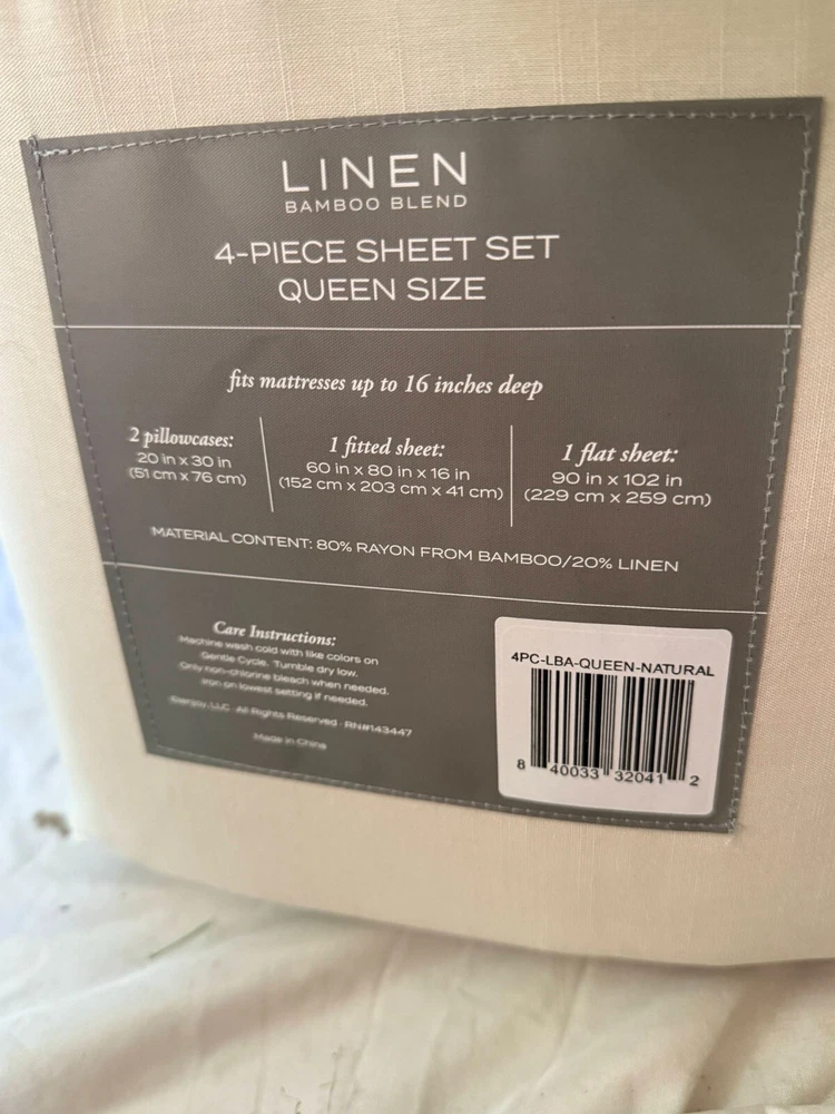 RETAIL PRICE $ 200 BEST PRICE GUARANTEED! This is guaranteed authentic. Brand: ienjoy Home Size: Queen Color: Beige Material: Linen Bamboo Condition: New with tags! 78x80 in Fitted sheet 108x102 in Fl...