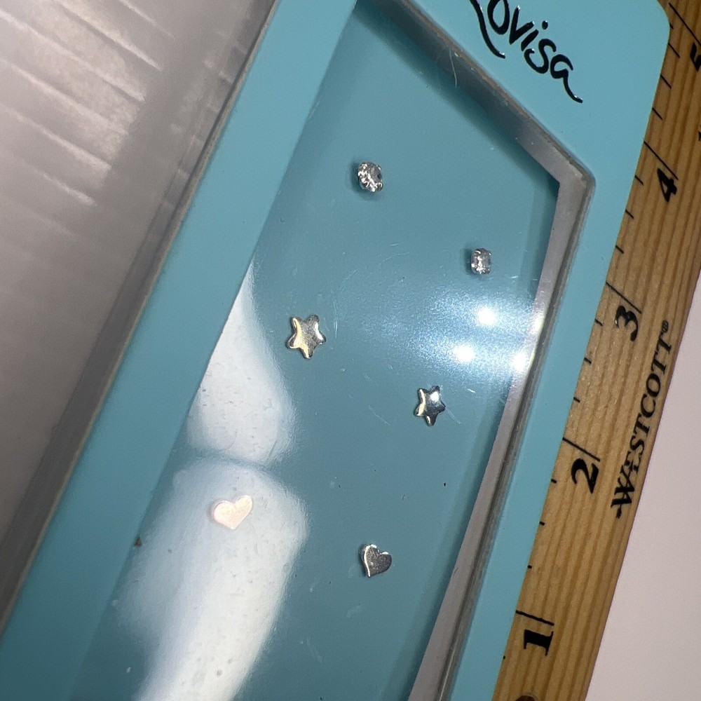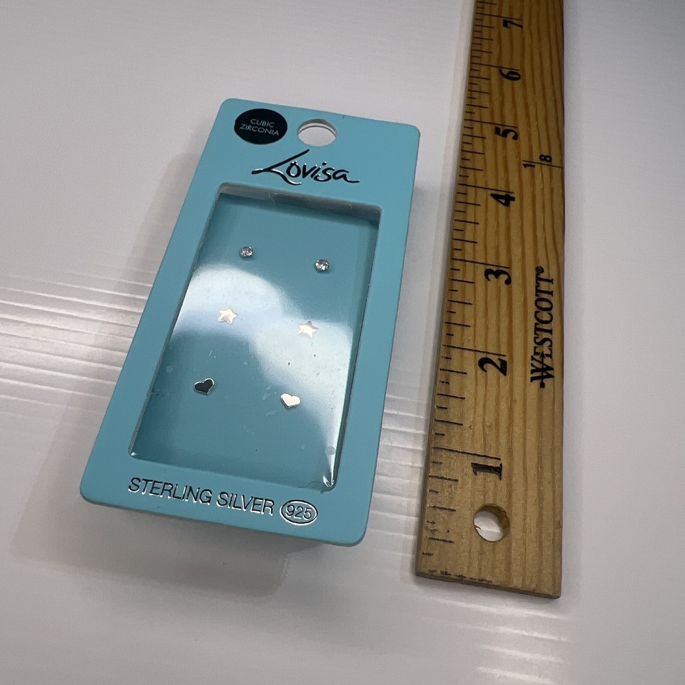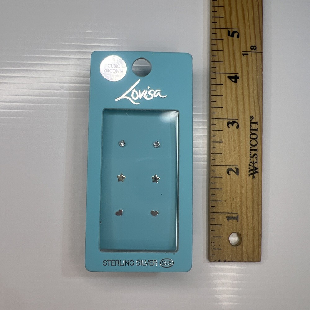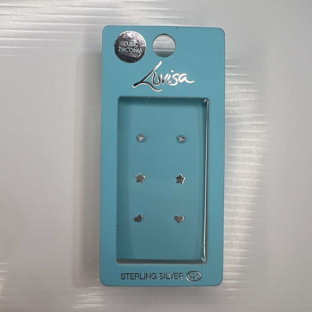 LOVISA 925 Sterling Silver CZ Star & Heart Stud Earrings 3-Pack Set