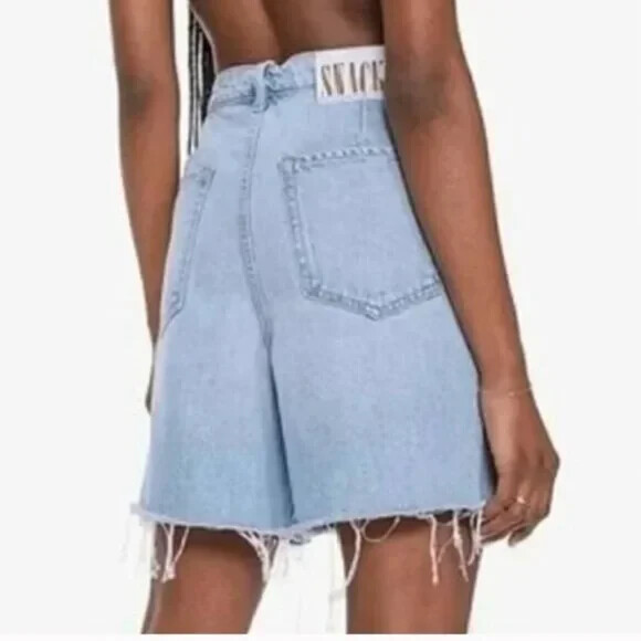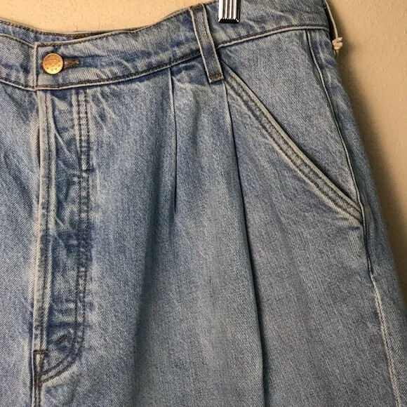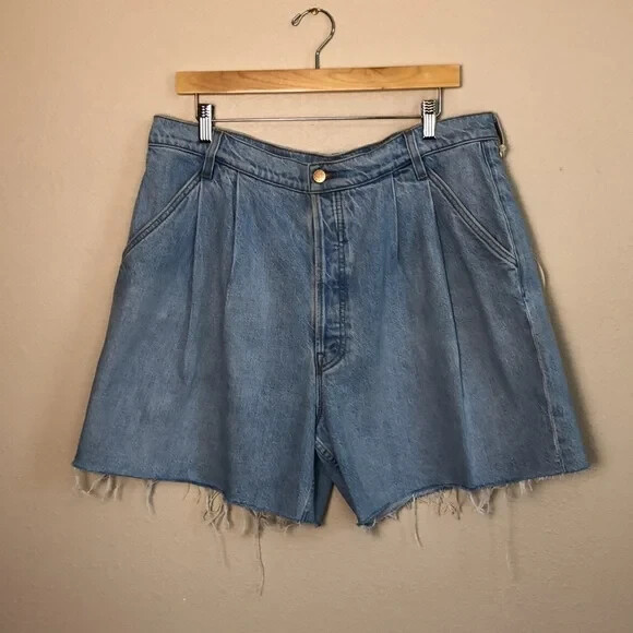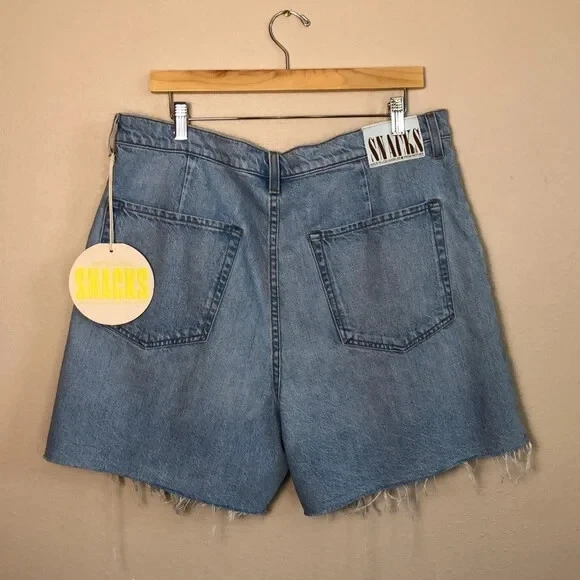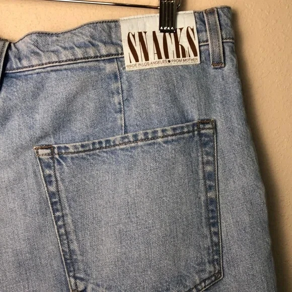 Just a nibble SNACKS! From MOTHER takes cues from throwback styles of the 80s and 90s but reimagines them with more exaggerated shapes. The slouchy, oversized jeans feature super high rises, deep pleats, drop crotches and inseams that puddle at the hem with extreme proportion size. Channeling the nostalgia of snack time with pretzel-detailed buttons and candy-coated rivets that look good enough to eat. These amazing shorts are in excellent new condition with no flaws noted. Zip fly with button closure Belt loops Side slit pockets Front pleats Made in rigid 100% cotton Approximate Garment Measurements: Waist is 36" around, hip area is 47" around, inseam is 6", rise is 14", and total length from waist to hem is 18" Please review all pictures for additional details. STYLE TAGS: Classic, Casual, Clean Beauty, Designer, Denim Pet-free, Smoke-free environment; Ships same or next day.