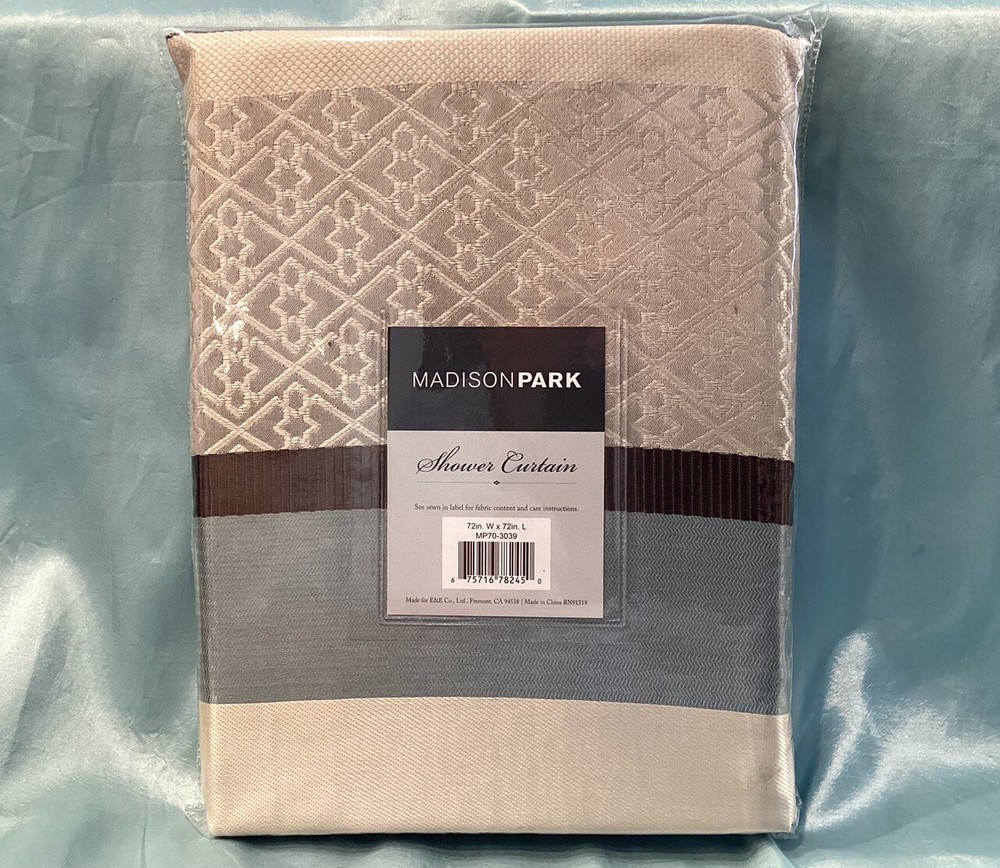 Add a touch of elegance to your bathroom with this gorgeous Madison Park Jacquard Shower Curtain. The beautiful blue and brown geometric & damask pattern is perfect for any bathroom decor. Measuring 72 inches in length and width, this square-shaped curtain is suitable for showers and made from high-quality polyester material. With the Madison Park brand name, you can trust that this shower curtain is made with the utmost care and attention to detail. It's perfect for adding a stylish and functional touch to your bathroom. Please view pictures for additional information and actual photos condition. If you have any questions, please ask. Thanks for looking. I try to provide enough pictures so that you can’t n judge what the item's condition, grade, or worth.