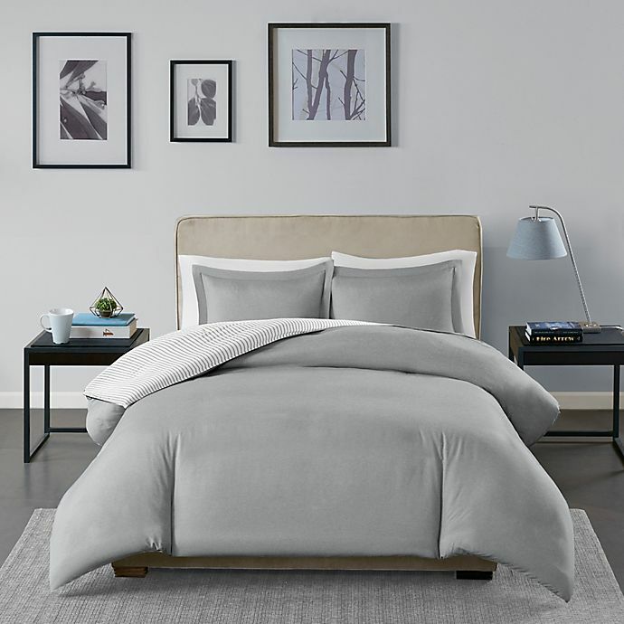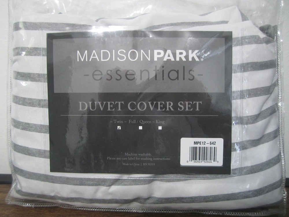 New Madison Park Essentials Hayden Reversible Twin Duvet Cover Set in Grey 2 Piece / TWIN SIZE Classic pinstripes give this bedding a crisp look and feel Reverses to a solid color Reversible pillow shams coordinate with top of bed for a complete look Twin duvet cover set includes: 63" W x 86" L duvet cover 100% polyester Machine wash Zipper closure Ultra-soft yarn dyed fabric in a heathered style print Ships within 24 hours of payment with tracking