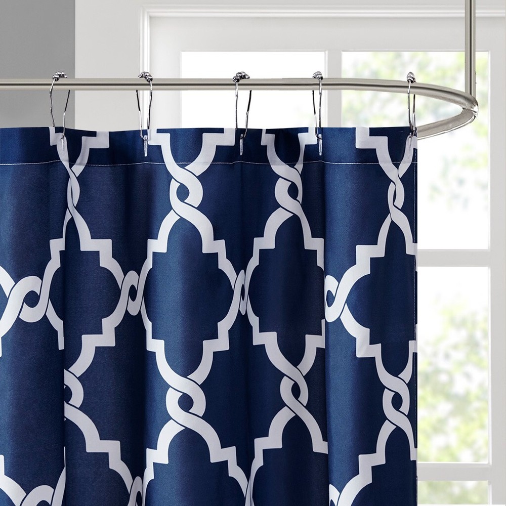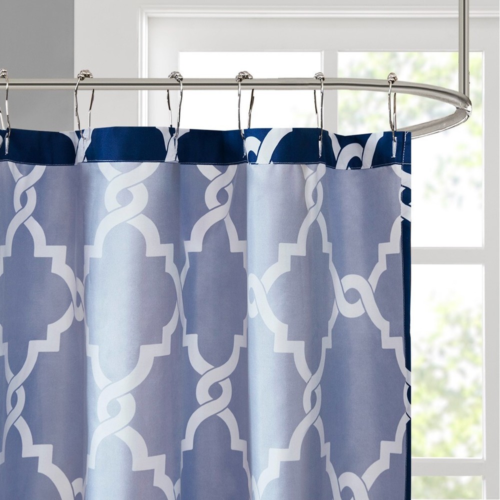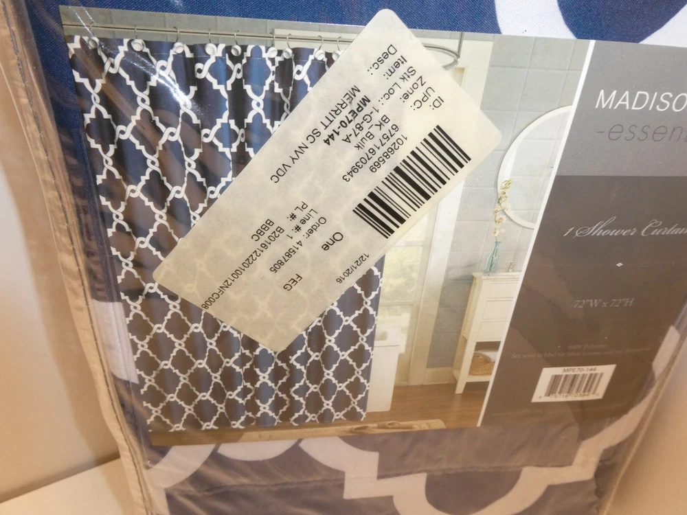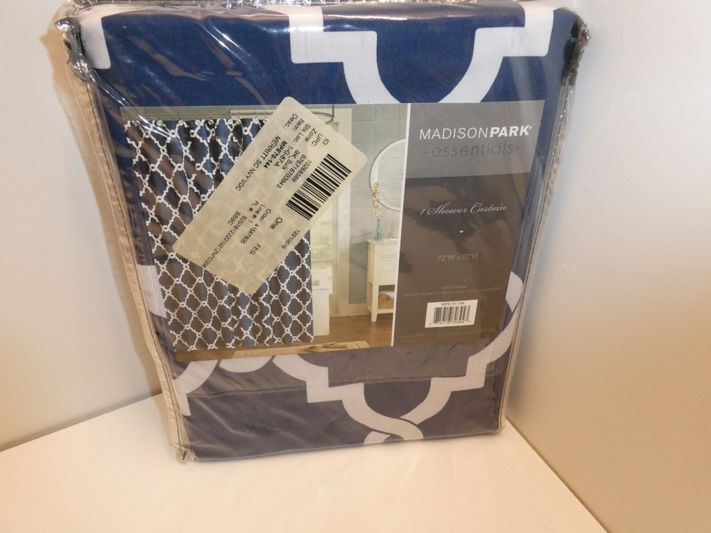 New Madison Park Essentials Blue & White Shower Curtain 72"W x 72"H MPE70-144. Please email if you have any questions. I only ship to the USA. INTERNATIONAL BIDDERS WILL HAVE TO GO THROUGH EBAY'S GLOBAL SHIPPING PROGRAM IF YOU WANT TO PURCHASE. I do combine shipping when possible. N