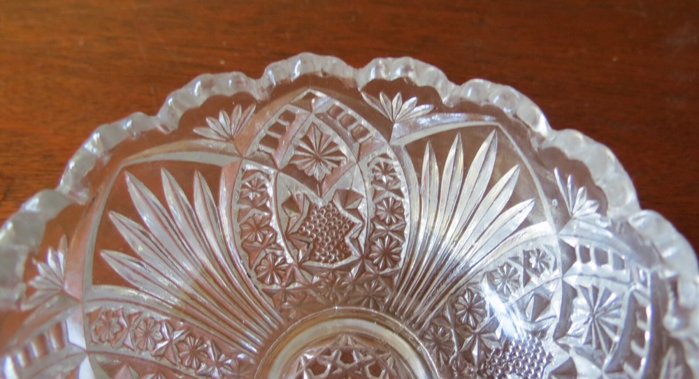 For your consideration is this wonderful and elegant Early American Pattern Glass (EAPG) 2 3/8” tall large salt dip (these can also be used as small sherbet style individual fruit, berry, sauce or dessert bowl) made by the New Martinsville Glass Company in the Arrowhead pattern. This pattern was also made as Madora by Bryce and Higbee Glass. The small footed bowls (large dips) are 2 3/8” tall and have a top diameter of 3 ¼”. The bowl is not marked and is clear. This is a buy it now listing for one dip but there are multiples available. I do combine shipping and if there are excess funds from the eBay shipping calculation during checkout, I will post a refund to your payment account. Several items in the combined order may affect the rate as dose USPS dimensional weight pricing and/or distance shipped. Thank you for looking.