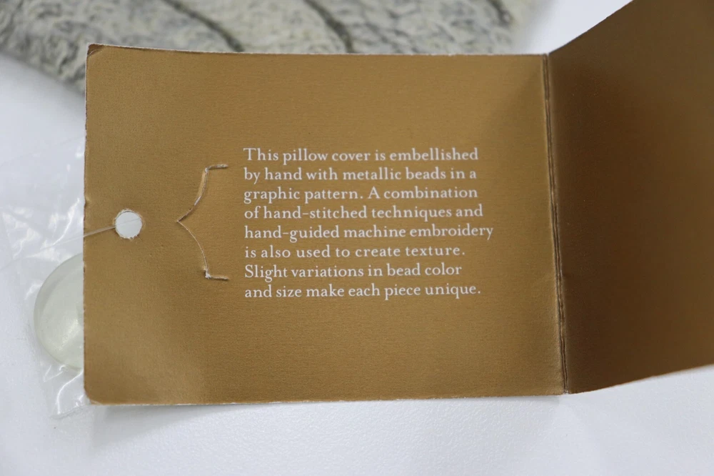 Add a touch of elegance to your home décor with this beautiful Pottery Barn beaded swirl pillow cover. The hand-embroidered beaded design is a stunning addition to any room. The pillow cover measures 20 x 20 inches and is perfect for those who love unique and stylish decor. The brand is known for its quality and style, making this pillow cover a great investment for any home. The swirl pattern adds a playful touch to the design, making it a great choice for any room in your home. The beaded features add a touch of sophistication to the overall look of the pillow cover. This is a must-have accessory for anyone who wants to add a touch of style to their home. Brand new with tags 20X20 Hand Beaded SKUG53