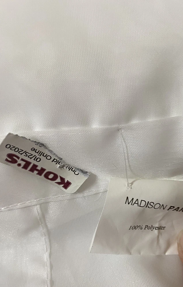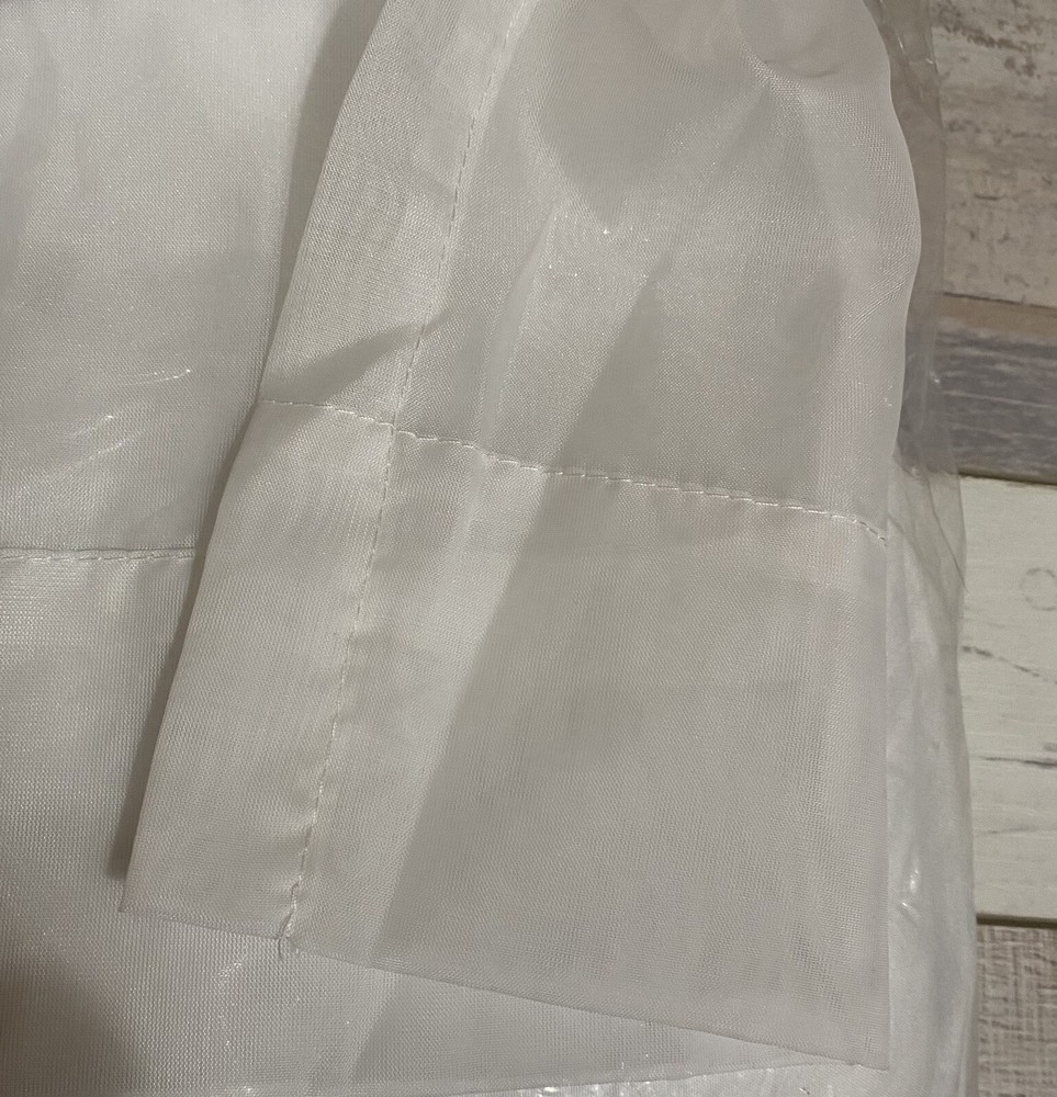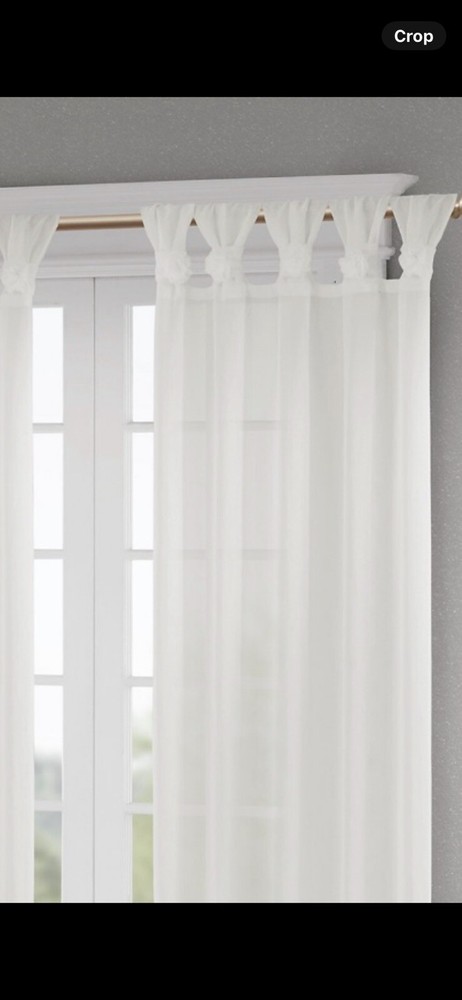 New - no package. Has an attached top tab that twists over the rod pocket, which allows you to design a twist at the top. Add elegance to your home decor with this Madison Park Embellished Sheer White Curtain. The curtain panel features a twist tab top heading for a chic finish. Made of polyester, this curtain panel is 63 inches in length and 50 inches in width, making it perfect for any window in your home. The sheer transparency adds a delicate touch to any room and the white color complements any design scheme. This curtain panel is perfect for those who want to add a touch of sophistication to their home without compromising on style.