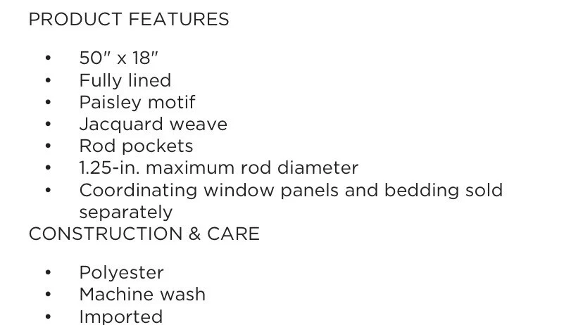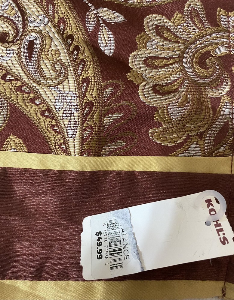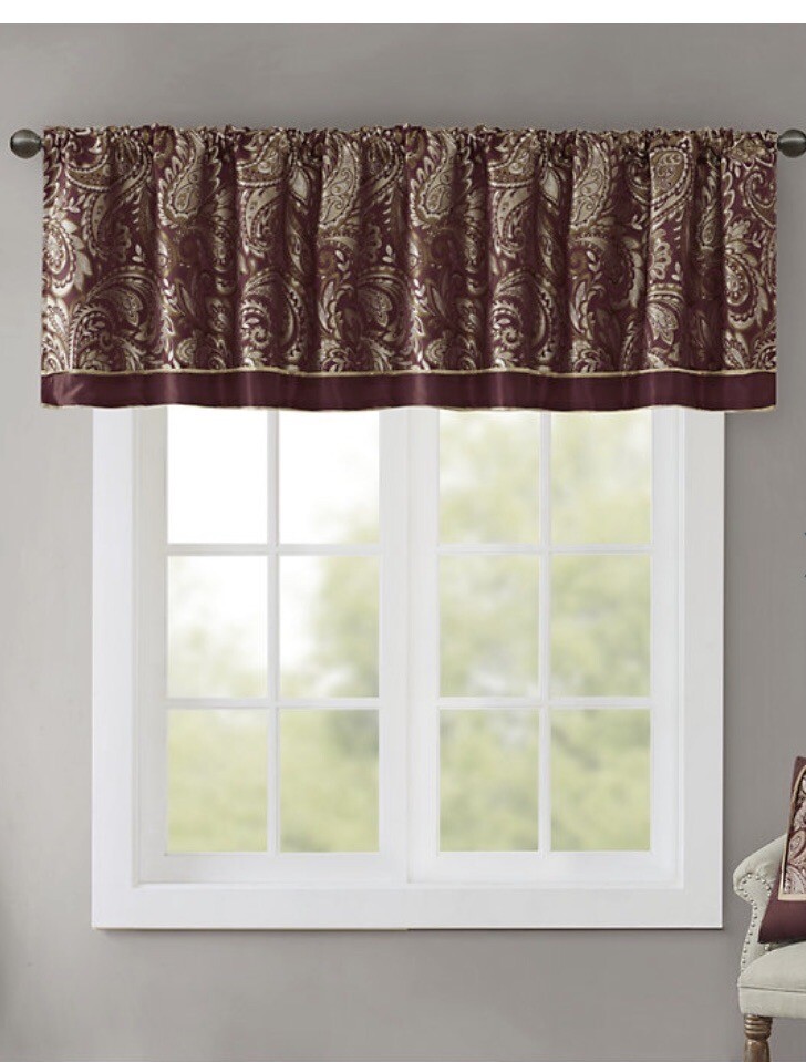 Enhance the look of your home décor with these two beautiful Madison Park Winston Window Valances. The valance features a stylish paisley pattern in burgundy red color, which is perfect for adorning your windows. Made of high-quality jacquard material, it comes with a rod pocket design that makes it easy to install and remove. This valance is lined and measures 50 inches in width and 18 inches in length, adding an elegant touch to your room. Ideal for your living room or bedroom, this valance is sure to impress your guests and complement your home's style.