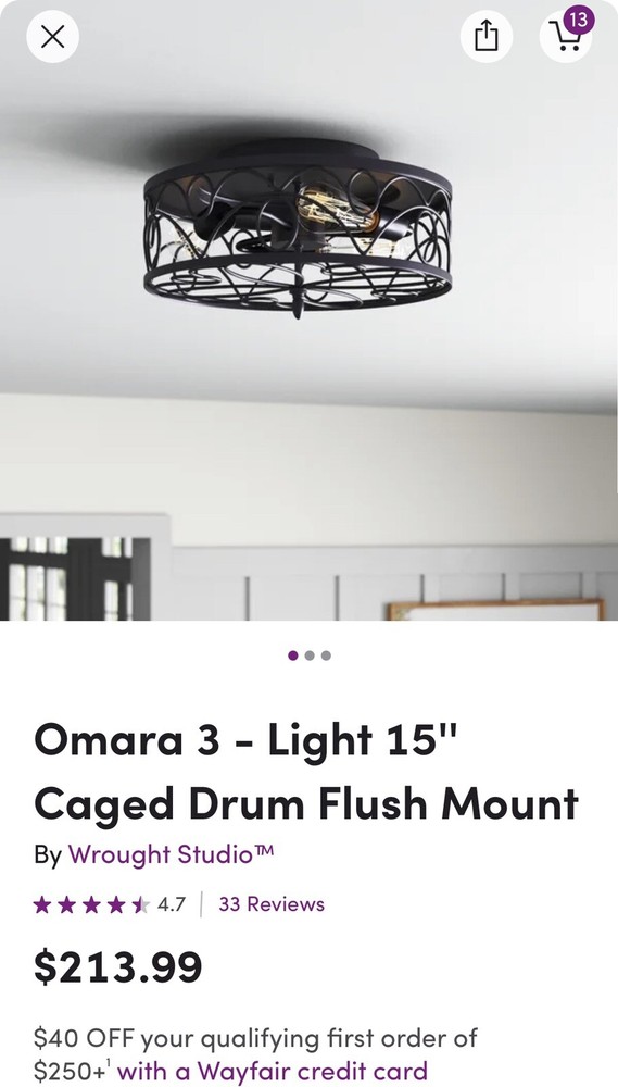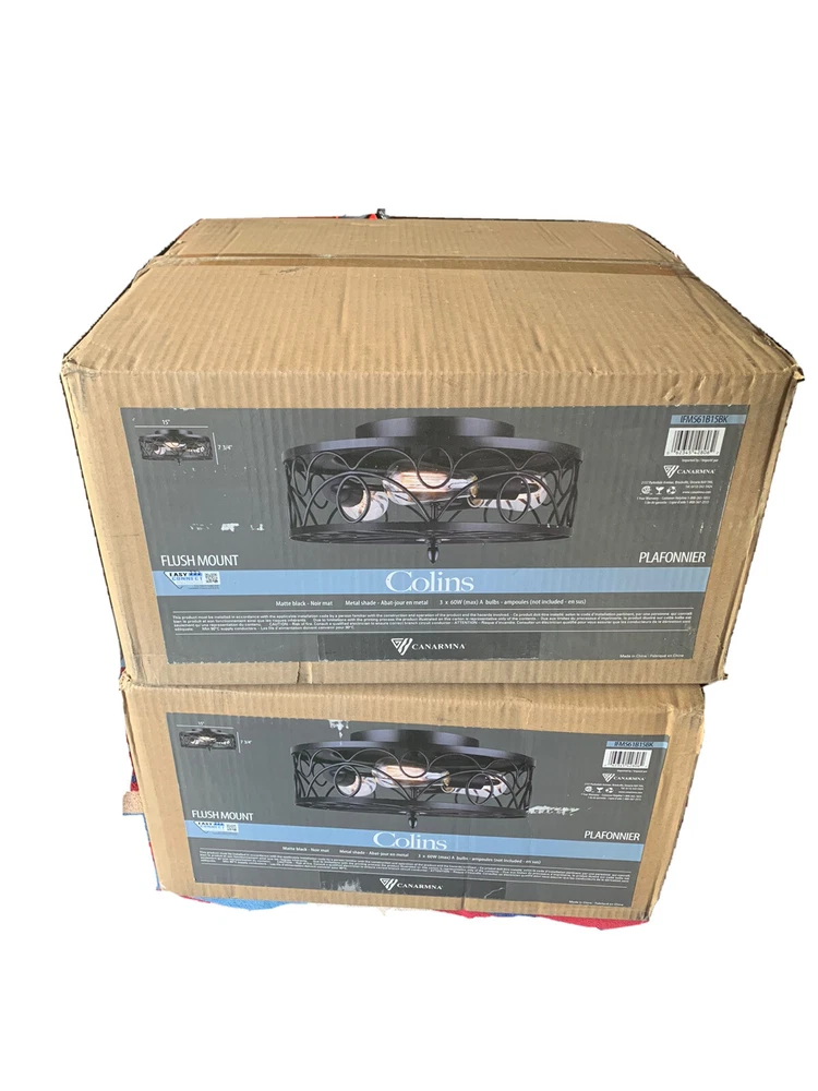 New Omara 3-Light Black Flush Mount Light Fixture By Wrought Studio. I have 2 light fixtures, brand new never opened box. I bought them from wayfair. I never got to use them because I remodeled my home and installed recessed lights. $175.00 each OBO