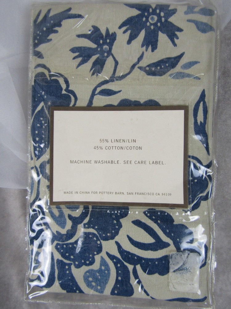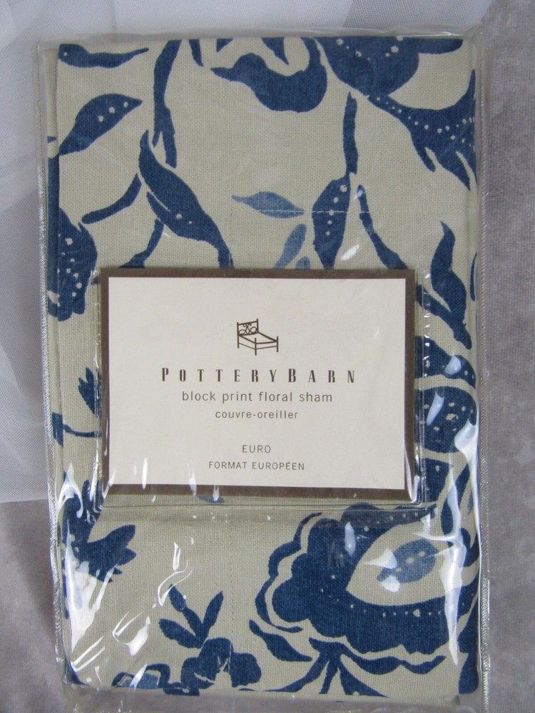 Brand New Pottery Barn Block Print Floral Euro pillow sham- 24.5" square plus 2.5" flange Color mixture's of Blue & Khaki 55% Linen 45% Cotton...