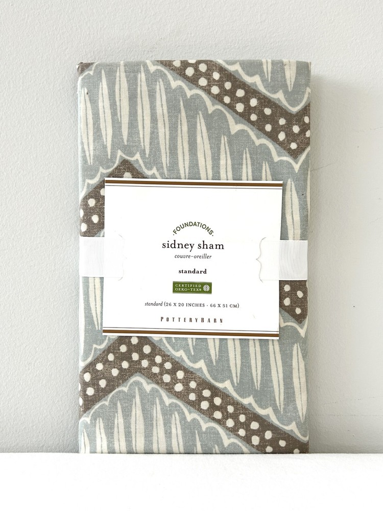 New! POTTERY BARN Foundations Sidney Sham Standard 26” x 20” Cotton Blue Brown NWT New Pottery Barn Foundations Sidney Sham. Standard size, 100% cotton. Approximately 26” x 20”. This listing is for one sham only. Please ask any questions before purchasing.