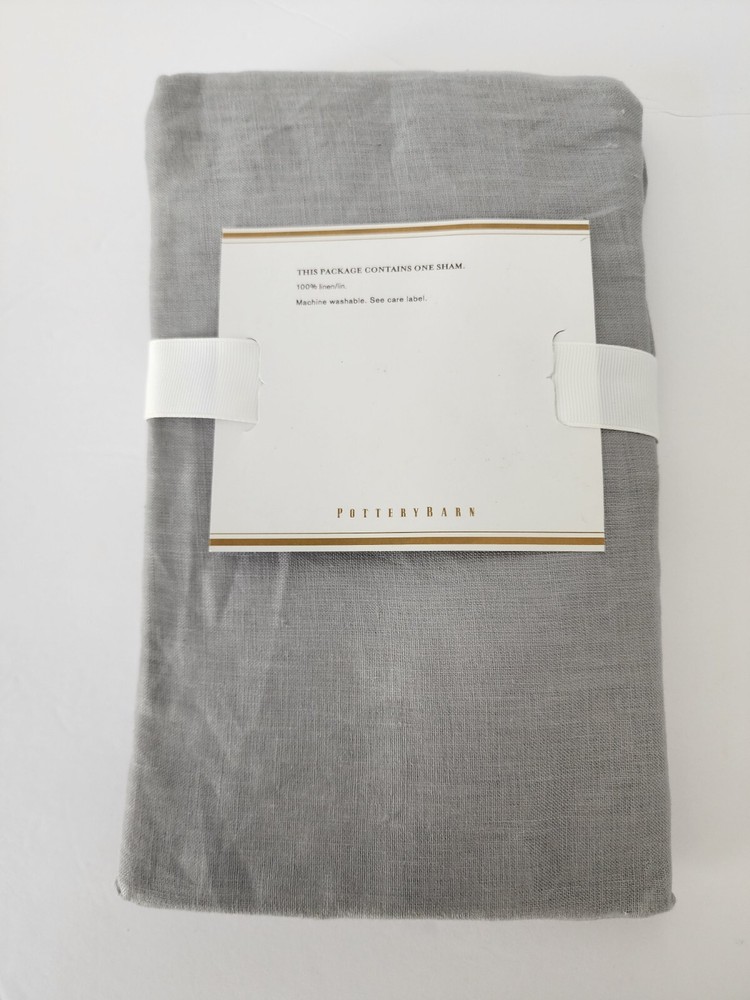 New with tag POTTERY BARN Gray Woven 100% Linen Standard Pillowcase Ruffle Sham 20” X 26” in excellent condition without holes, rips or tears! Come from a smoke free environment! Thanks for looking!