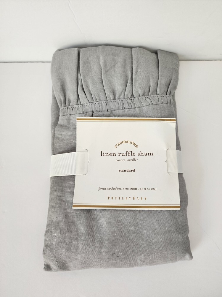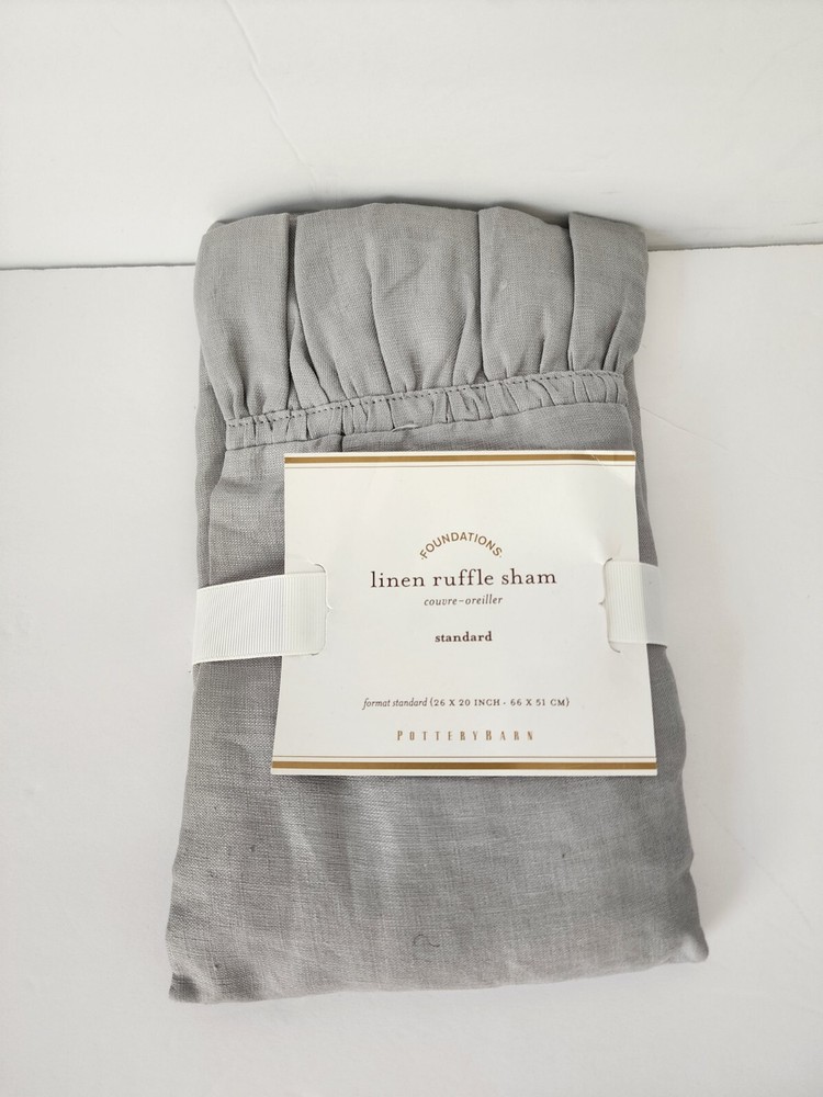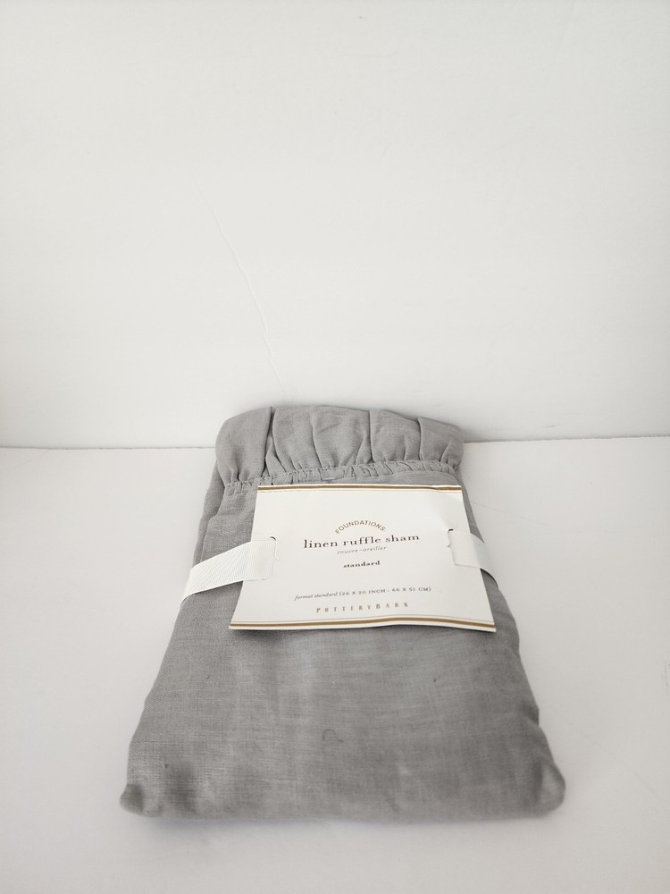 New with tag POTTERY BARN Gray Woven 100% Linen Standard Pillowcase Ruffle Sham 20” X 26” in excellent condition without holes, rips or tears! Come from a smoke free environment! Thanks for looking!...