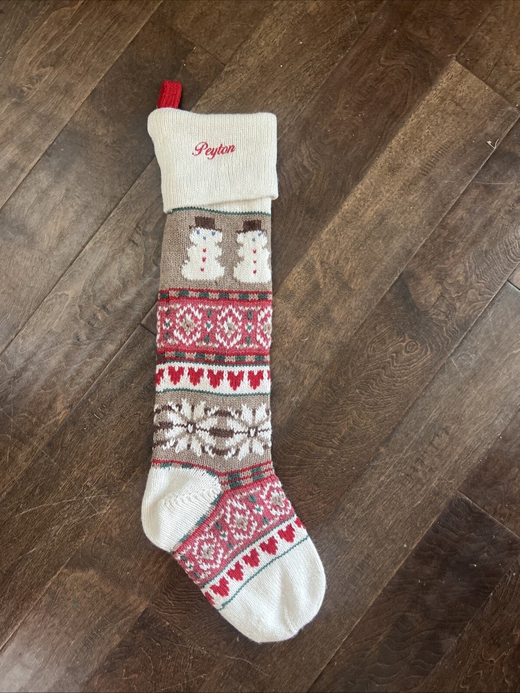 POTTERY BARN KIDS Fair Isle Knit Cream Snowman Christmas Stocking - Peyton Style