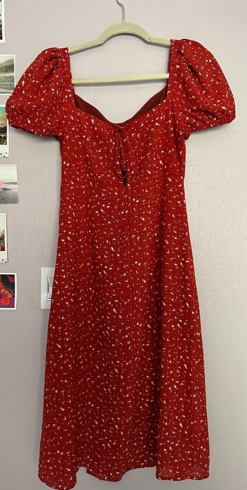 New Petite Studio Adelaide Red Dress Midi length medium. Brand: Petite Studio- This beautiful piece is from sustainably made, NYC based fashion brand Petite Studio. Puff sleeve detail, with swooping button detail, midi length with the perfect sized slit. It’s the perfect Spring/Suer piece for a picnic, dinner, or museum visit. ONLY WORN ONCE!100% polyester.Light and soft fabric designed for ultra comfort and move ability. Lined for coverage.Hand wash cold or machine wash.Note: the third included shows a closeup of the TRUE COLOR and Print of the dress.