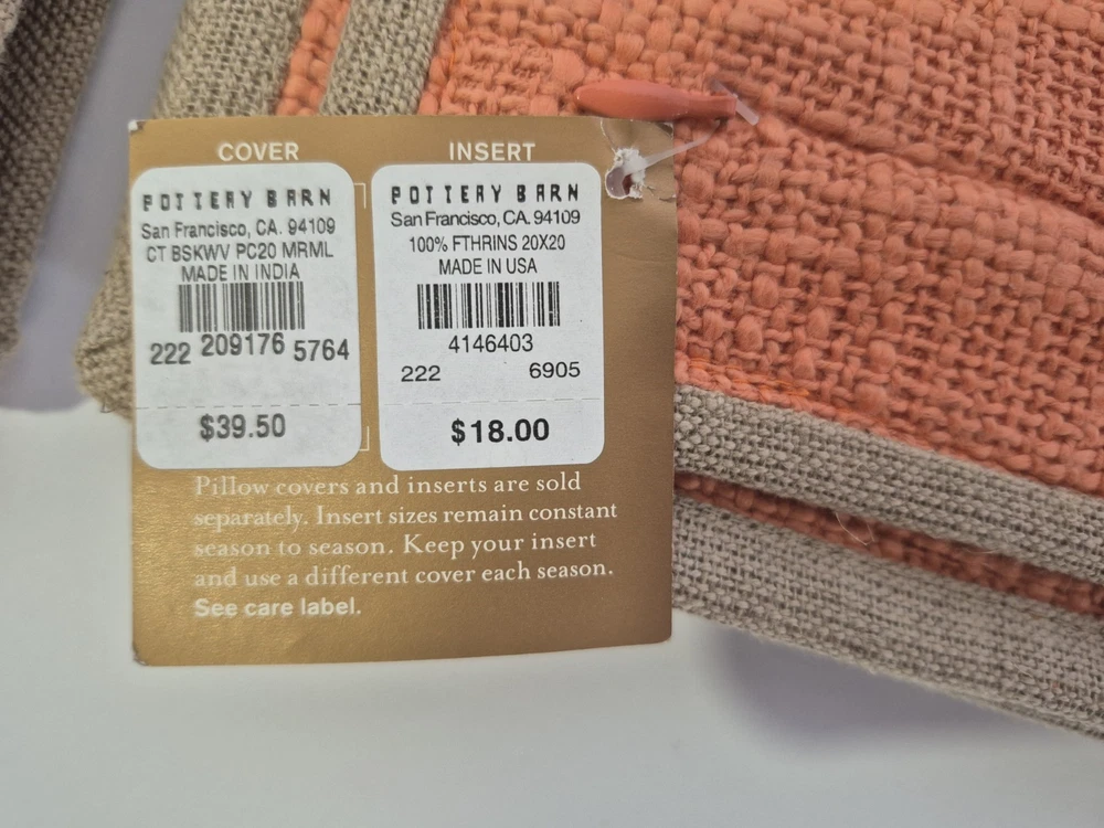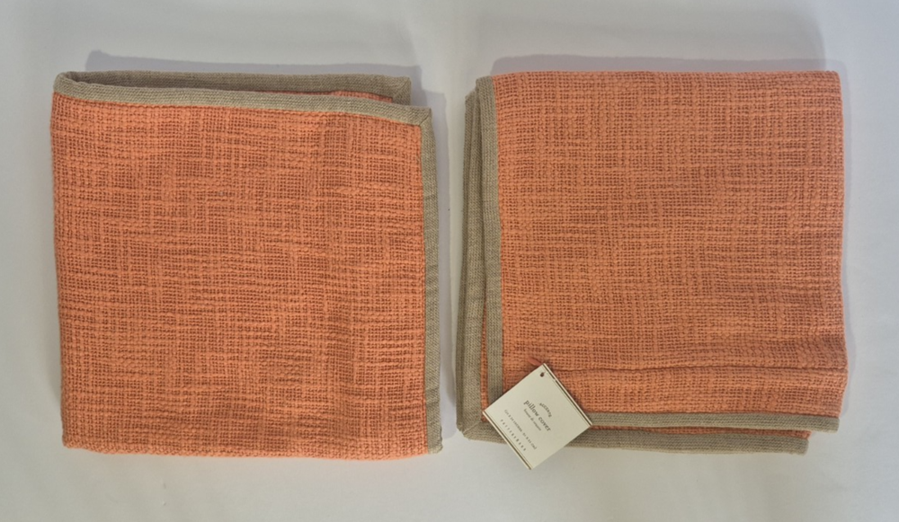 The New Pottery Barn Basket Weave Cotton Pillow Cover Shams in marmalade are a stylish addition to any bedroom decor. Measuring 20 x 20 inches, these pillow shams feature a coral pattern and are part of the Pottery Barn Basket collection. Made of high-quality cotton, they add a touch of elegance and comfort to your bed. Perfect for creating a cozy and inviting atmosphere in your bedroom, these shams are a must-have for any Pottery Barn fan.