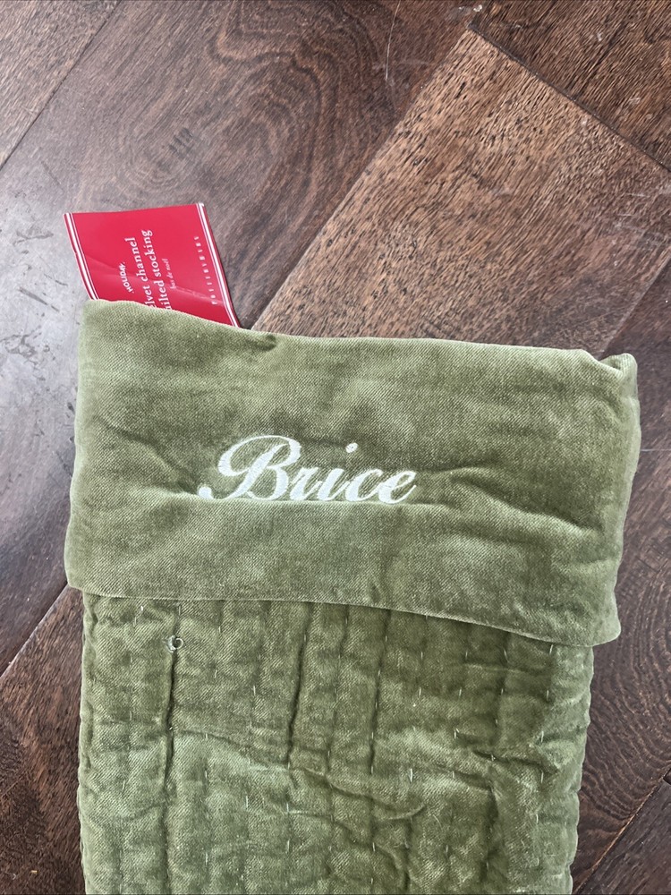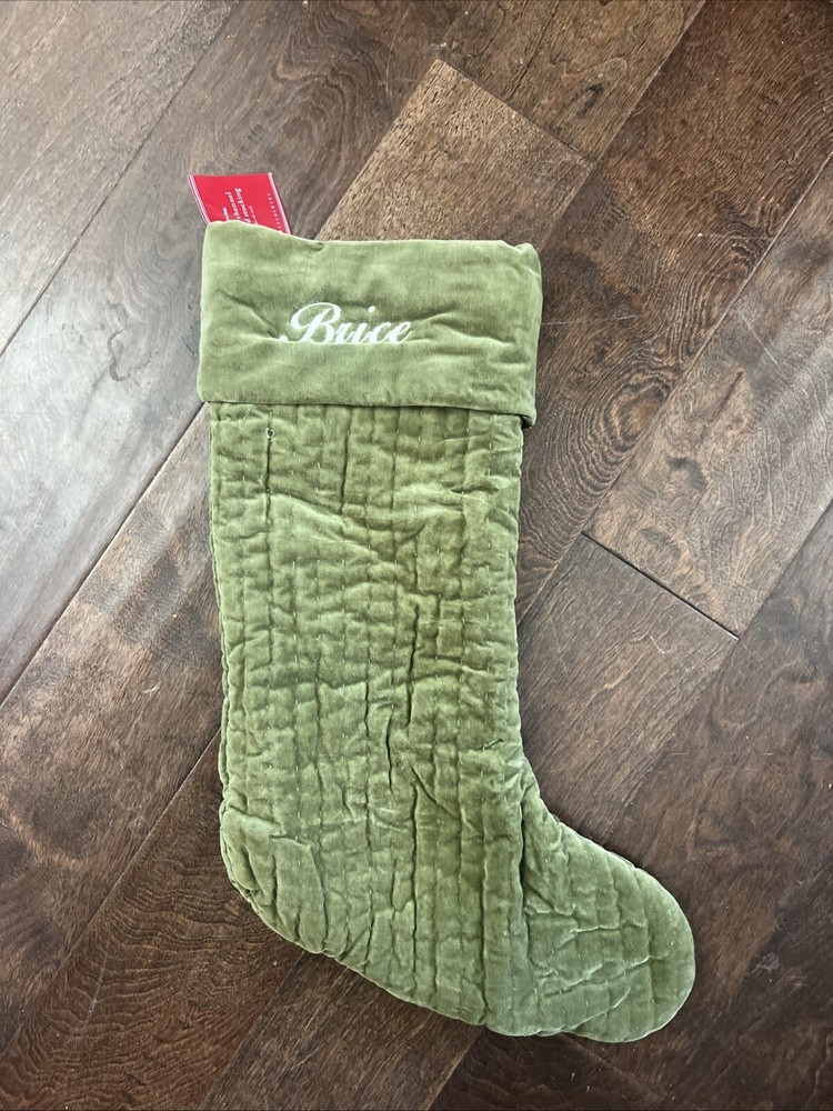 Pottery Barn Channel Quilted Stocking name and size as stipulated in the title! Plush and soft, our quilted-velvet stockings deck the mantel with warmth and provide a luxurious setting for those special gifts. Made of 100% cotton velvet. Batting and lining are made of pure polyester. Channel quilted for subtle texture and detailed with a deep cuff and a hanging loop. Imported. DIMENSIONS Medium Stocking Overall: 9" wide x 15.5" long Top Opening: 9" wide Top To Heel: 15.5" Foot (toe to heel): 8.5" long Folded Cuff: 4.75" high Hang Loop: 5" long Large Stocking Overall: 11" wide x 20" long Top Opening: 11" wide Top To Heel: 20" Foot (toe to heel): 10.5" long Folded Cuff: 5.5" high Hang Loop: 5" long Frequently Asked Questions Do you personalize / monogram these items yourself? ~No. I get these items already monogrammed from the Pottery Barn family of companies. I'm unable to personalize items. Do you have items from previous seasons? ~Yes! I've been selling these items for over 10 years and have some inventory from every Pottery Barn holiday season since then. See my other items for what's remaining. How fast do you ship? ~We ship within 1-2 business days and offer the lowest cost shipping routes we can find. As the holidays get closer we will ship daily. Are these items new? ~Yes! They are kicked out of the PB system due to monogram errors (wrong color, wrong font, slightly off center, etc.) Are there any flaws? ~Occasionally there is a less than perfect monogram which is why I post close-ups of every monogram for you to see exactly what your buying. Are the tags written on? ~Yes, at least the can be. Most often I receive these items with the store tag lined through or written on to prevent in store returns. I get them this way. Do you have other styles? ~Yes! See my other listings for my inventory of a selection of almost all of the other stockings sold by Pottery Barn, Pottery Barn Kids, and Mark & Graham. How are these items stored? ~Clean, Smoke-Free, Pet-Free environment Do you accept returns? No due to the seasonal nature of my stock I do not offer returns. What if I have a problem with this item? ~If there is a problem we ask that you please contact us before leaving negative feedback as we're great to work with. While we strive to strive to accurately describe every item, we occasionally miss something due to the volume we offer, especially around the holidays. If we made a mistake we ask that you give us the opportunity to make it right.