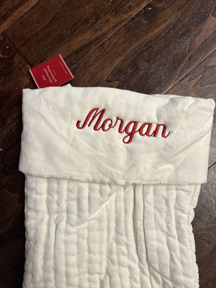 Pottery Barn Channel Quilted Stocking name and size as stipulated in the title! Plush and soft, our quilted-velvet stockings deck the mantel with warmth and provide a luxurious setting for those special gifts. Made of 100% cotton velvet. Batting and lining are made of pure polyester. Channel quilted for subtle texture and detailed with a deep cuff and a hanging loop. Imported. DIMENSIONS Large Stocking Overall: 11" wide x 20" long Top Opening: 11" wide Top To Heel: 20" Foot (toe to heel): 10.5" long Folded Cuff: 5.5" high Hang Loop: 5" long Frequently Asked Questions Do you personalize / monogram these items yourself? ~No. I get these items already monogrammed from the Pottery Barn family of companies. I'm unable to personalize items. Do you have items from previous seasons? ~Yes! I've been selling these items for over 10 years and have some inventory from every Pottery Barn holiday season since then. See my other items for what's remaining. How fast do you ship? ~We ship within 1-2 business days and offer the lowest cost shipping routes we can find. As the holidays get closer we will ship daily. Are these items new? ~Yes! They are kicked out of the PB system due to monogram errors (wrong color, wrong font, slightly off center, etc.) Are there any flaws? ~Occasionally there is a less than perfect monogram which is why I post close-ups of every monogram for you to see exactly what your buying. Are the tags written on? ~Yes, at least the can be. Most often I receive these items with the store tag lined through or written on to prevent in store returns. I get them this way. Do you have other styles? ~Yes! See my other listings for my inventory of a selection of almost all of the other stockings sold by Pottery Barn, Pottery Barn Kids, and Mark & Graham. How are these items stored? ~Clean, Smoke-Free, Pet-Free environment Do you accept returns? No due to the seasonal nature of my stock I do not offer returns. What if I have a problem with this item? ~If there is a problem we ask that you please contact us before leaving negative feedback as we're great to work with. While we strive to strive to accurately describe every item, we occasionally miss something due to the volume we offer, especially around the holidays. If we made a mistake we ask that you give us the opportunity to make it right.