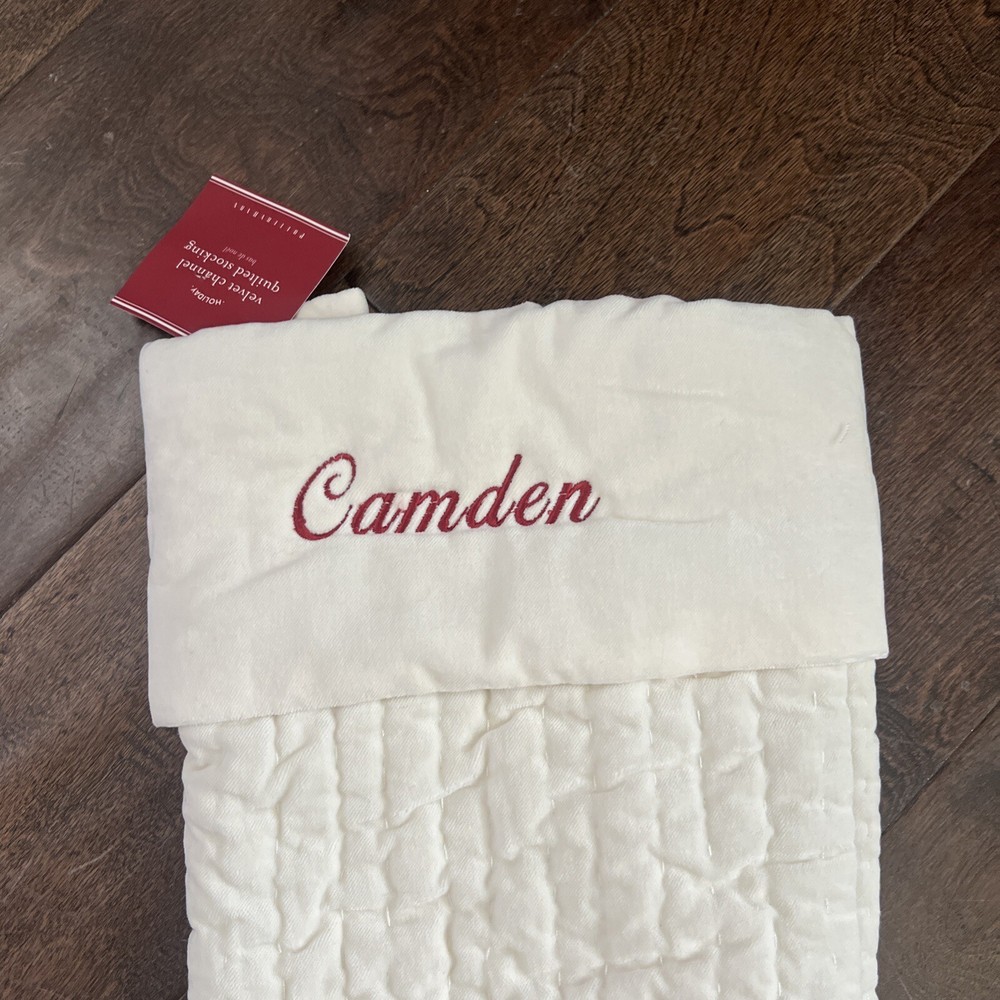 Pottery Barn Channel Quilted Stocking name and size as stipulated in the title! Plush and soft, our quilted-velvet stockings deck the mantel with warmth and provide a luxurious setting for those speci...