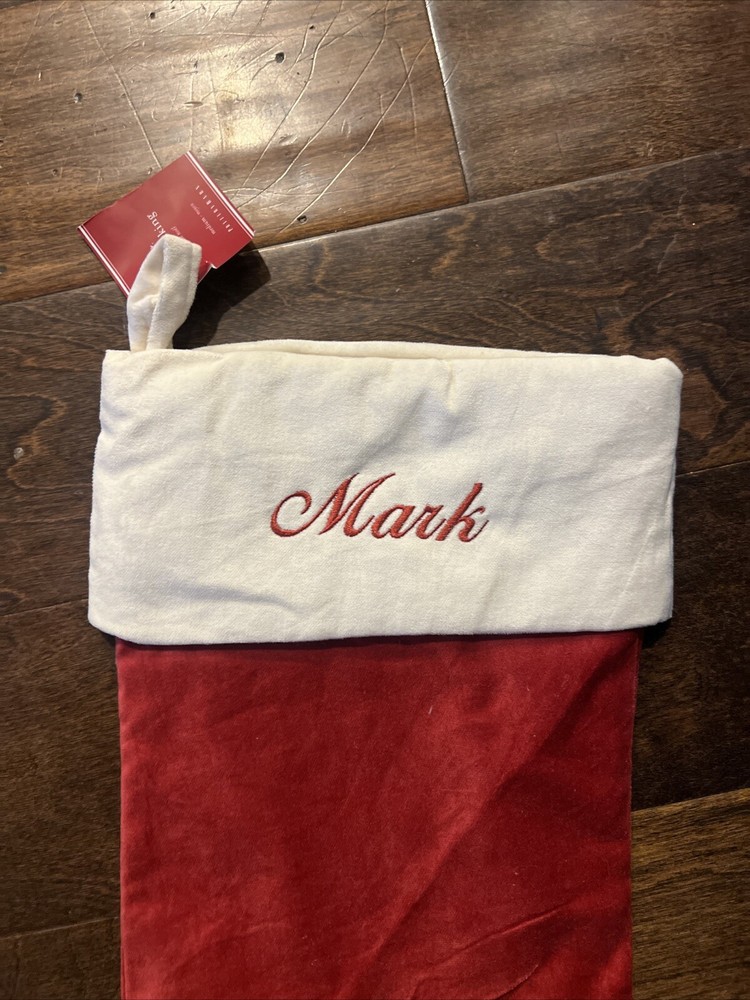 Crafted of luxurious velvet. This stocking will become a holiday keepsake. Medium Stocking Overall: 12.25" wide x 19.5" long Top Opening: 9" wide Top To Heel: 19.5" long Foot (toe to heel): 12.25" long Folded Cuff: 4.75" high Hang Loop: 5" long Smoke free home Frequently Asked Questions: Do you personalize / monogram these items yourself? ~No. I get these items already monogrammed from the Pottery Barn family of companies. I'm unable to personalize items. Do you have items from previous seasons? ~Yes! I've been selling these items for several years and have some inventory from every Pottery Barn holiday season since then. See my other items for what's remaining. How fast do you ship? We ship within 1-2 business days and offer the lowest cost shipping routes we can find. As the holidays get closer we will ship daily. Are these items new? ~Yes! They are kicked out of the PB system due to monogram errors (wrong color, wrong font, slightly off center, etc.) Are there any flaws? ~Occasionally there is a less than perfect monogram which is why I post close-ups of every monogram for you to see exactly what your buying. Are the tags written on? ~Yes, at least the can be. Most often I receive these items with the store tag lined through or written on to prevent in store returns. I get them this way. Do you have other styles? ~Yes! See my other listings for my inventory of a selection of almost all of the other stockings sold by Pottery Barn, Pottery Barn Kids, and Mark & Graham. How are these items stored? ~Clean, Smoke-Free, Pet-Free environment Do you accept returns? No. As these are seasonal items I only accept returns if I have made a mistake on the listing. What if I have a problem with this item? ~If there is a problem we ask that you please contact us before leaving negative feedback as we're great to work with. While we strive to strive to accurately describe every item, we occasionally miss something due to the volume we offer, especially around the holidays. If we made a mistake we ask that you give us the opportunity to make it right.