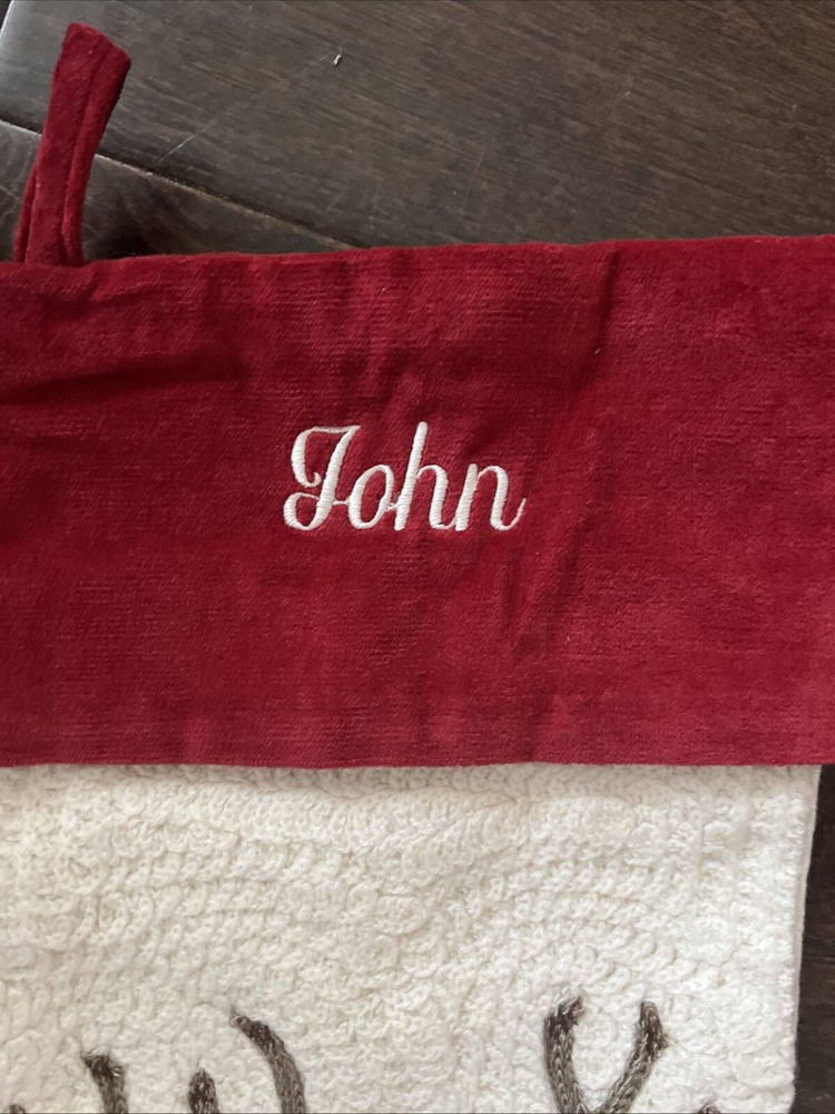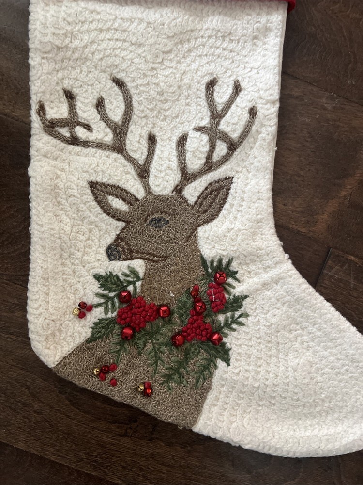 Pottery Barn Crewel Embroidered Deer Stag Christmas Stocking Mono John