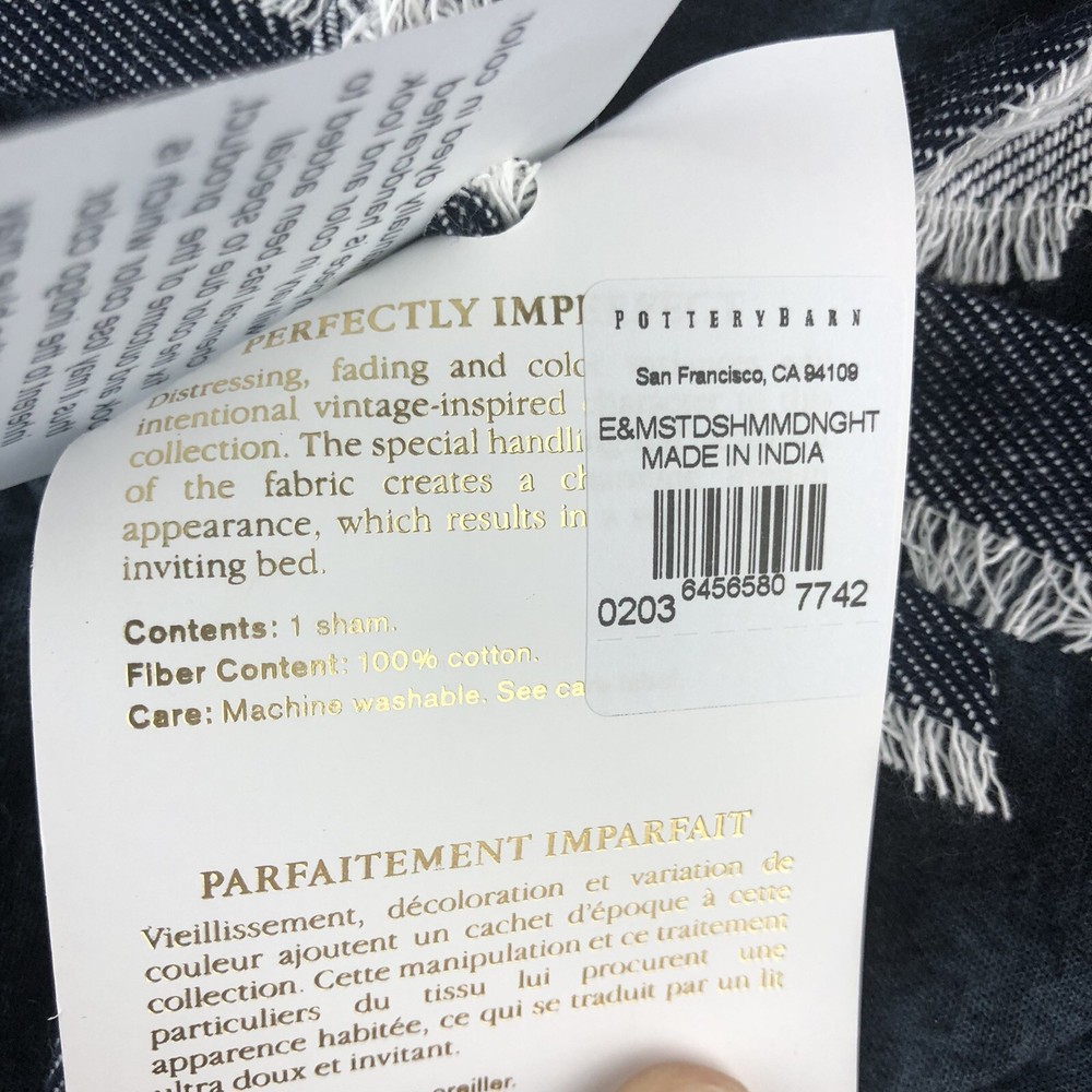 New Pottery Barn Emily & Meritt Indigo Stitch Standard Sham Midnight Blue. Condition is "New with tags". Shipped with USPS First Class....