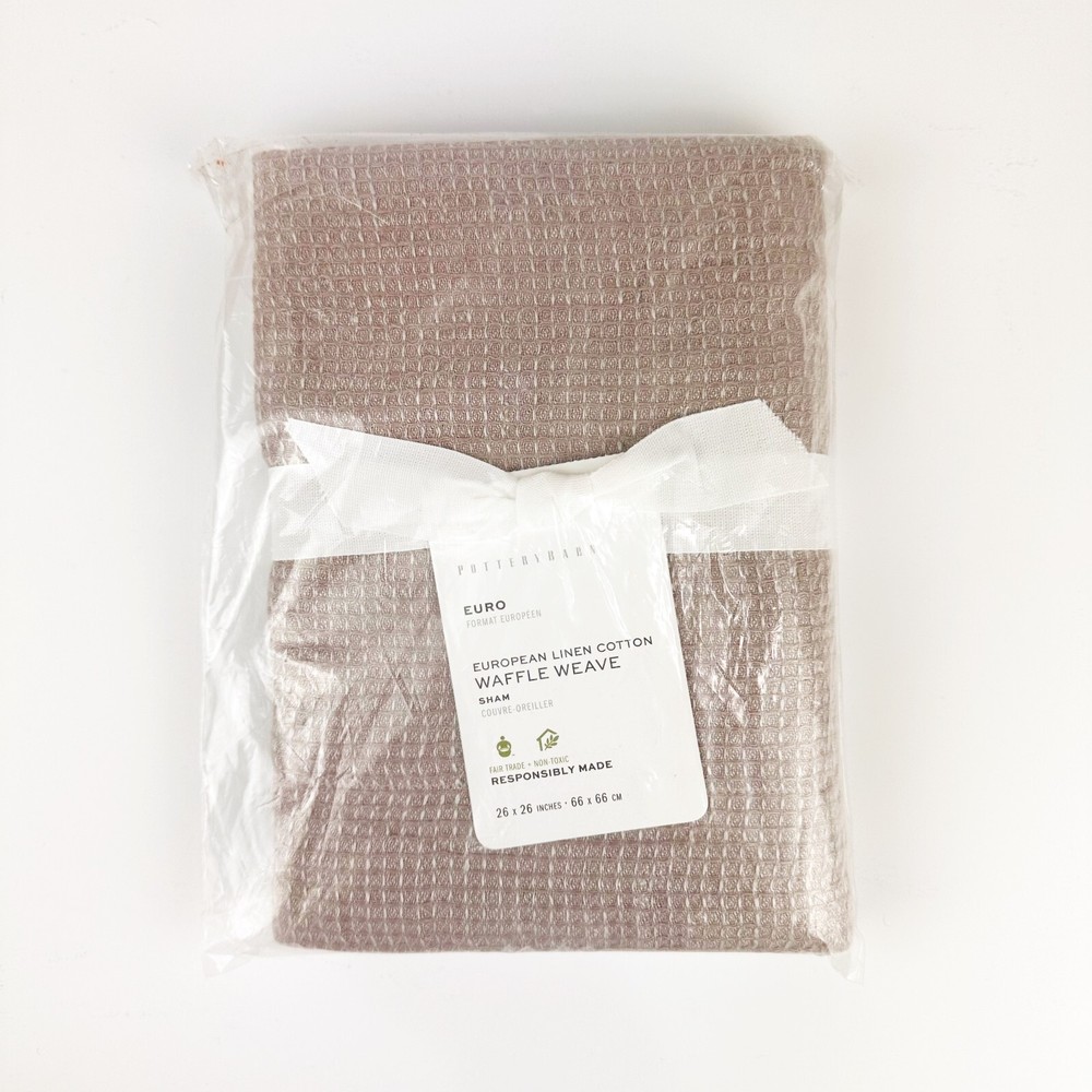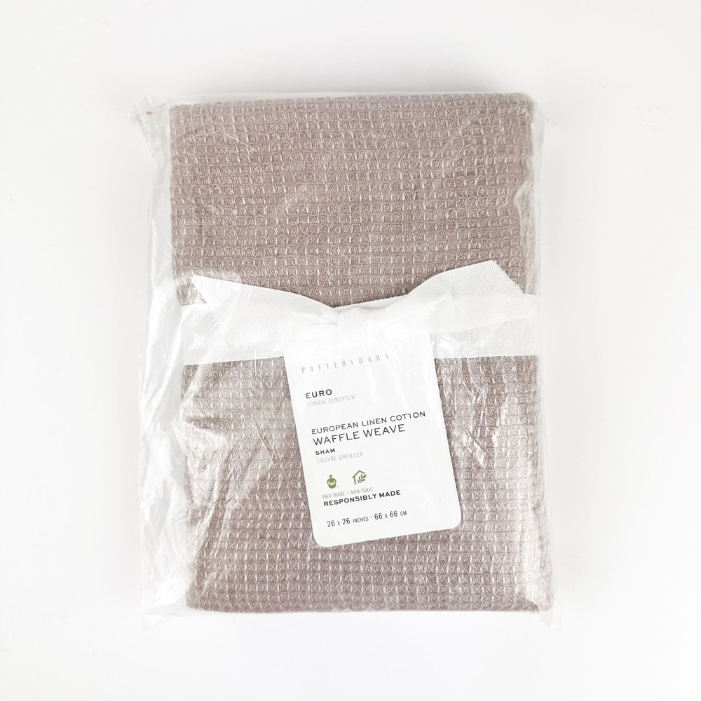 New Pottery Barn European Flax Linen Cotton Waffle Weave EURO Sham SMOKY QUARTZ Made from 100% European Flax linen. Reverses to 100% cotton. Sham features an envelope closure. Made in a Fair Trade Certified™ factory, supporting fair and safe labor practices and empowering workers to invest in their communities. Workers receive extra funds for every product sold which are used for community projects chosen by workers. STANDARD 100 by OEKO-TEX® Certified: WSI Certificate #: 14.HUS.42449 HOHENSTEIN HTTI: tested for 1000+ harmful substances to keep you and your family safe from chemicals common to textile manufacturing. Shams and inserts are all sold separately. EURO Size: 26" h x 26" w