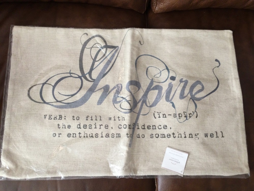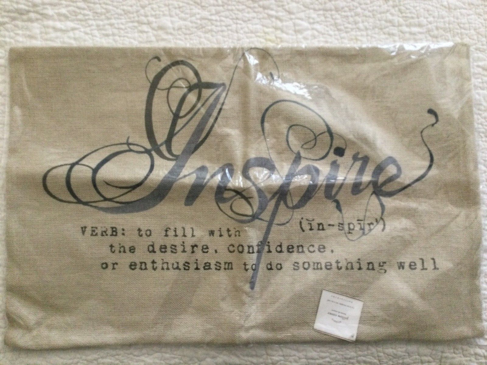 New Pottery Barn Inspire Sentiment Pillow Cover - New with Tag (VERB: "to fill with the desire, confidence, or enthusiasm to do something well" Measures 16" x 26" - insert not included Made of 54% Linen 46% Cotton Machine Wash Cold Thanks for Looking!