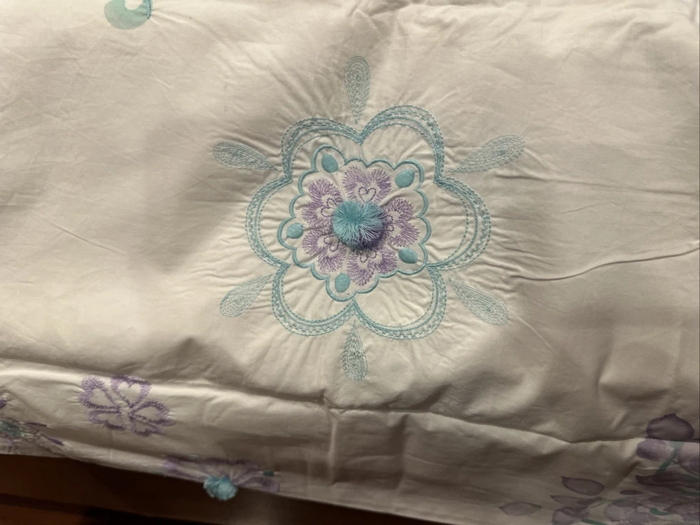 New. Only unfolded to take photos. Cotton Butterflies and flowers with raised Pom poms Orig price $ 159
