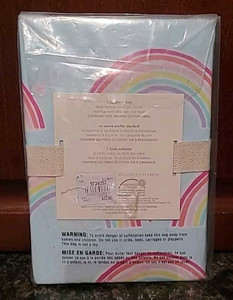 New Pottery Barn Kids Organic Rainbow Pillow Sham Blue Standard Cover Cotton Brand new in package. Blue background with multi-colored rainbows. 100% organic cotton. Smoke and pet free home....