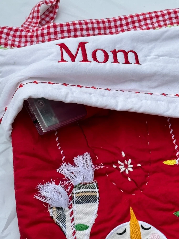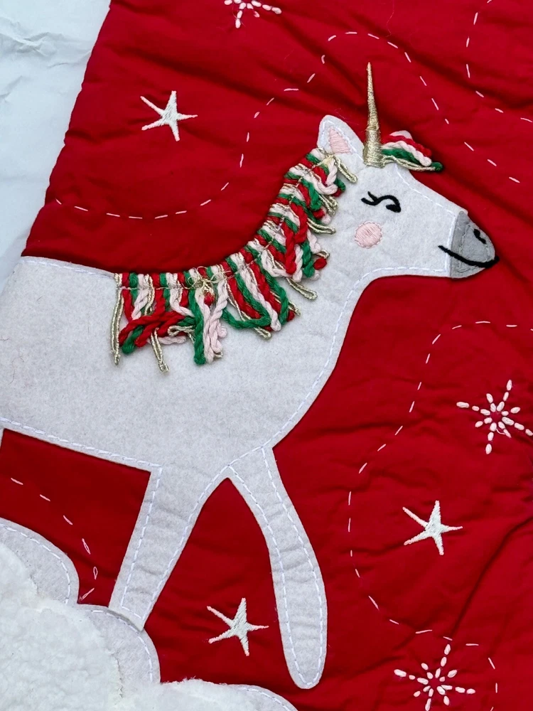 Absolutely love this adorable quilted stocking! The 3D details and embroidery are so vibrant and beautifully crafted—Santa, snowmen, and Rudolph look amazing. The quality is outstanding with soft cotton, sturdy stitching, and eco-friendly dyes. Perfect size for gifts, and the monogram option adds a personal touch. A festive must-have for the holidays!