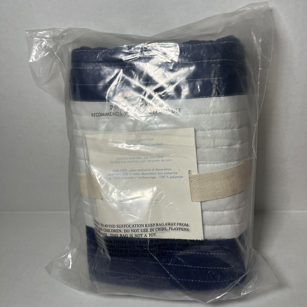 New Pottery Barn Kids Rugby Stripe Quilted Standard Sham Navy Blue White Cotton. Condition is New with tags. Shipped with USPS Ground Advantage.