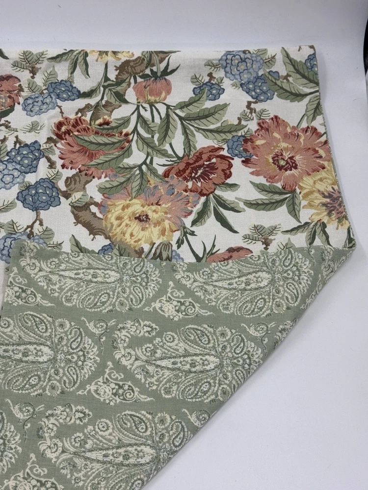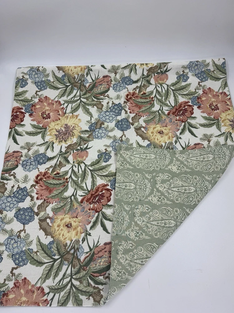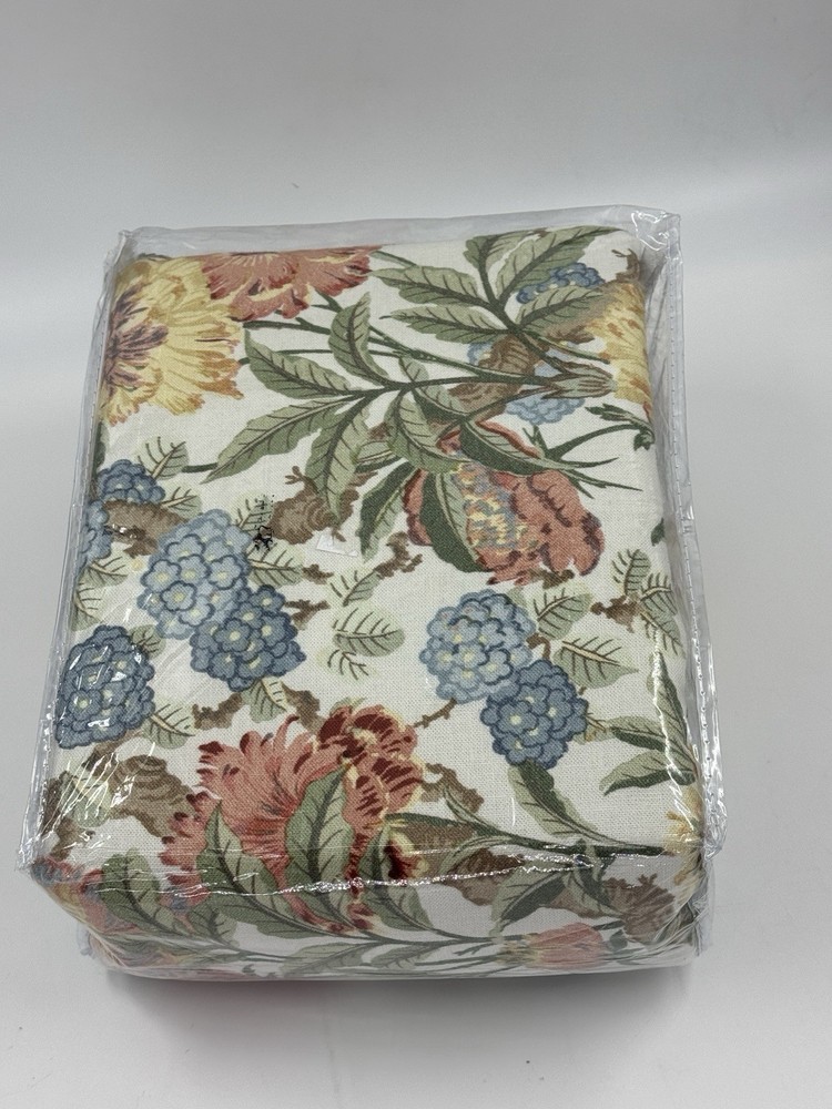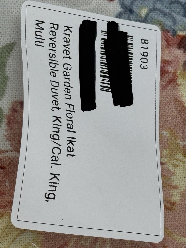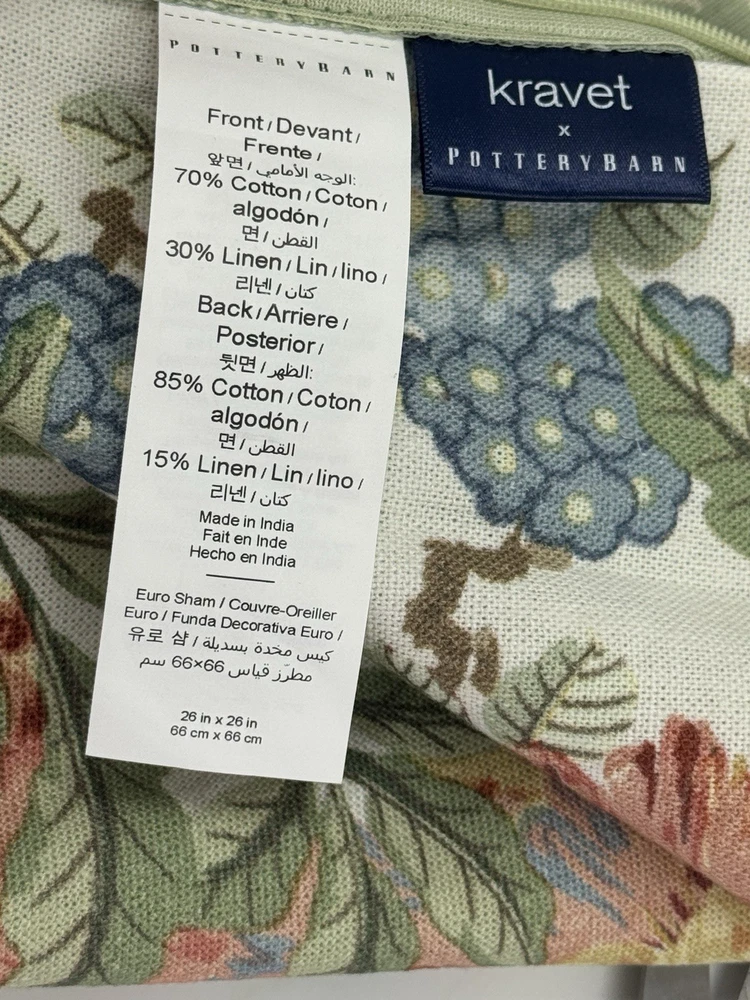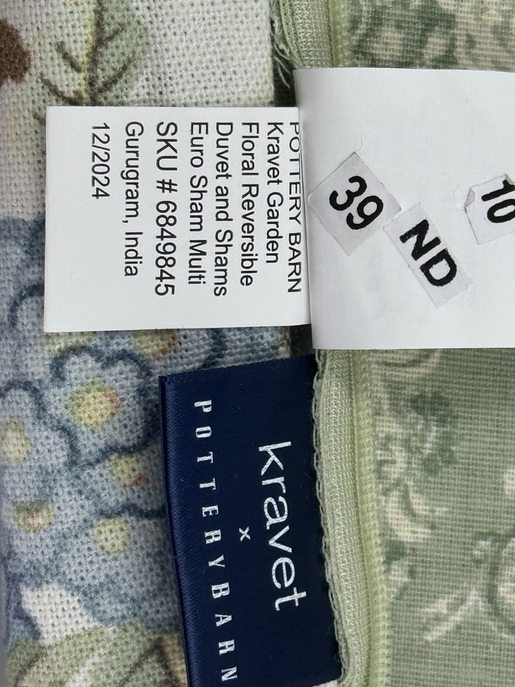 New Pottery Barn Kravet Garden Floral Ikat Reversible Duvet Cover King + 1 Euro sham New in original packaging. No tags. Package has marks. Made from 70% cotton and 30% linen. Reverses to 85% cotton and 15% linen. Duvet features a hidden button closure with inner ties that keep insert in place King/Cal. King: 92" w x 108" l Sham: 26 x26