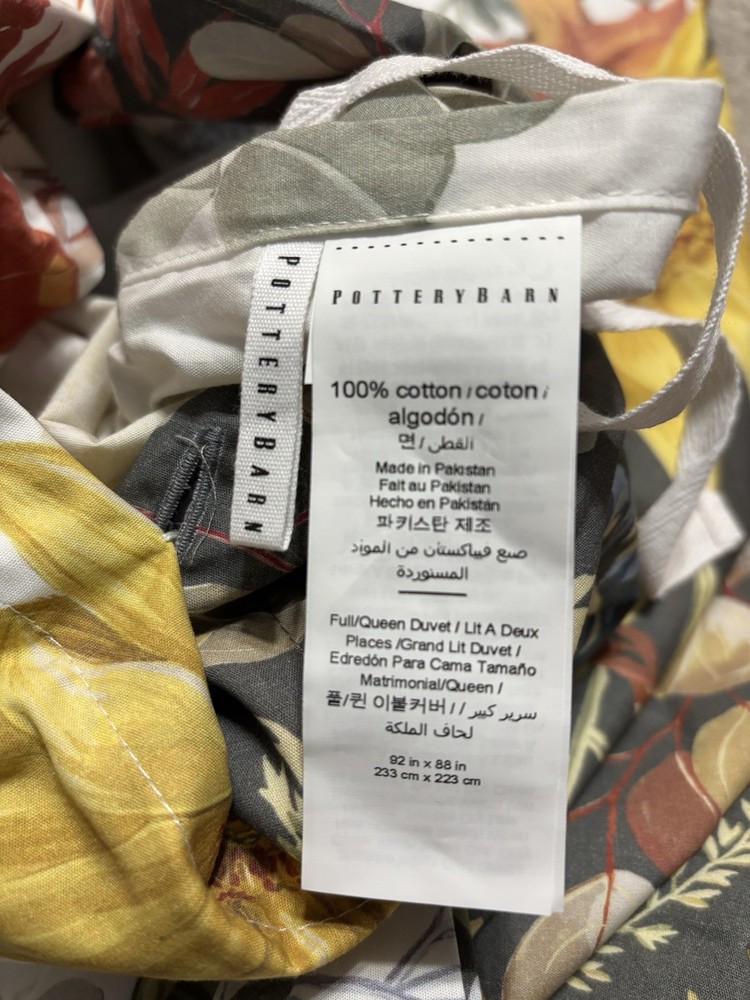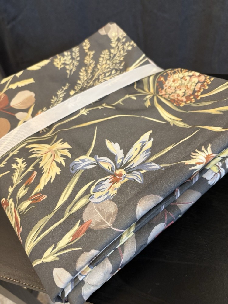 NWOT Size: Full/Queen: 88" w x 92" Woven of 100% cotton percale. Duvet features a button closure with inner ties that keep insert in place. Reverses to a coordinating pattern. Open box item