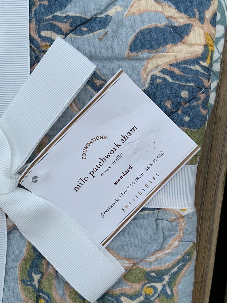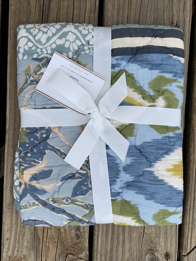 New Pottery Barn MILO Patchwork Quilted Pillow Sham Case ~Standard *Ikat Blue....