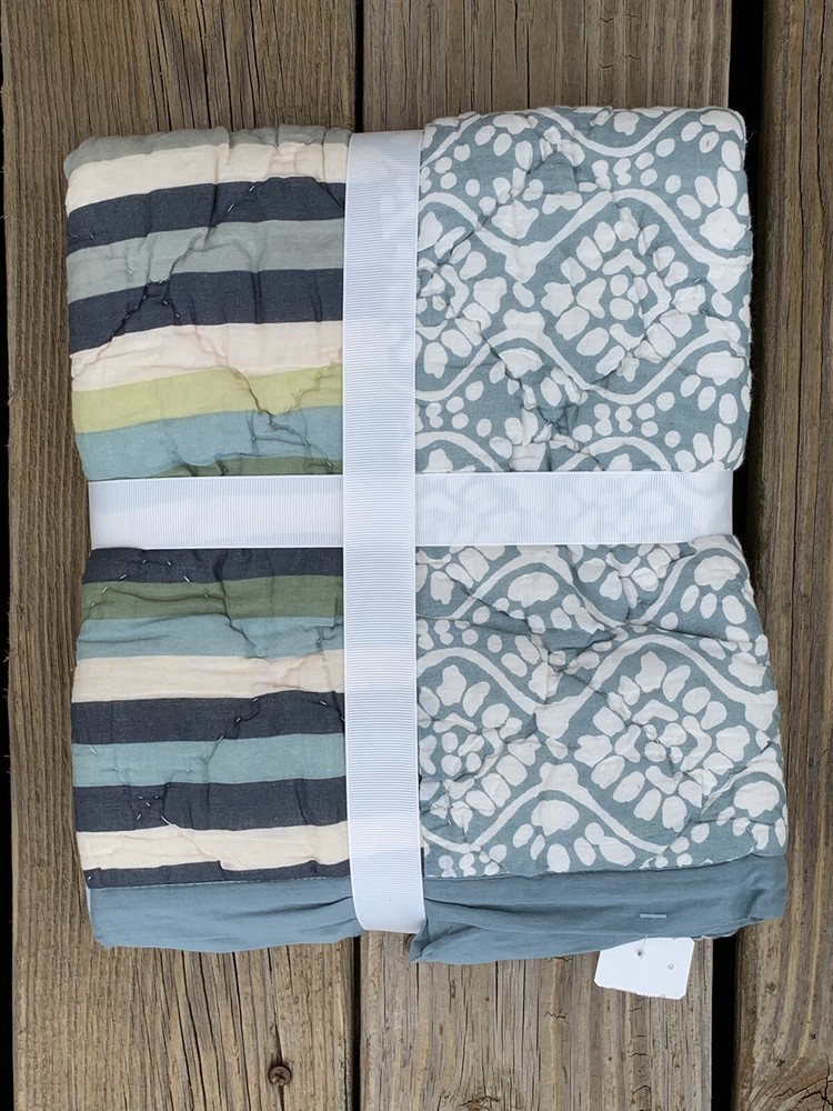 New Pottery Barn MILO Patchwork Quilted Pillow Sham Case ~Standard *Ikat Blue.