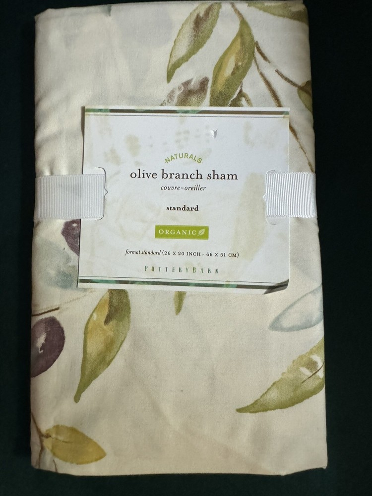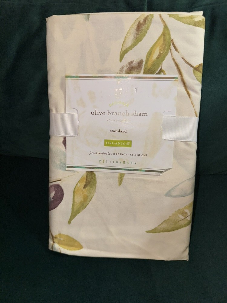 New Pottery Barn Olive branch cotton sham standard 26"x20".