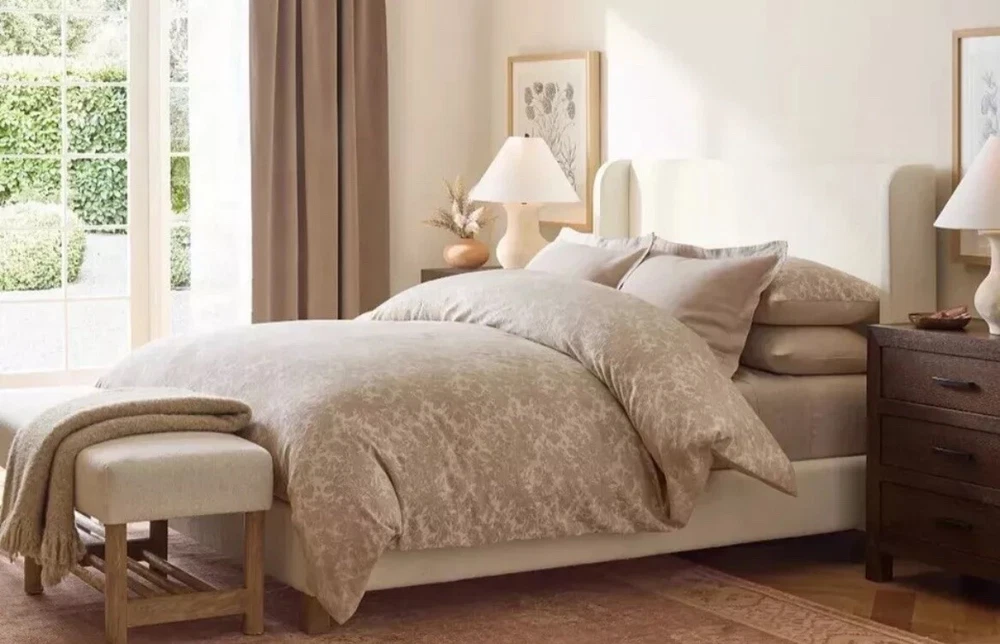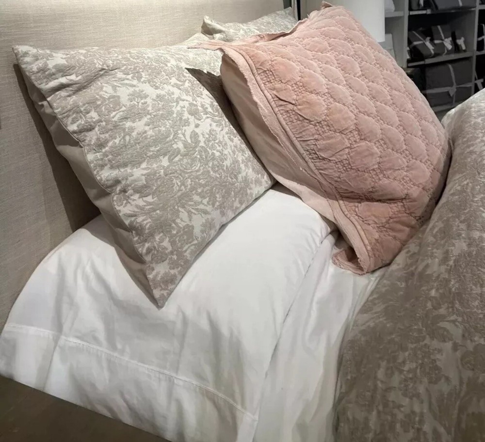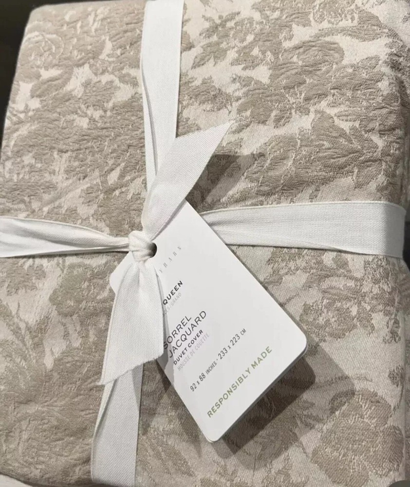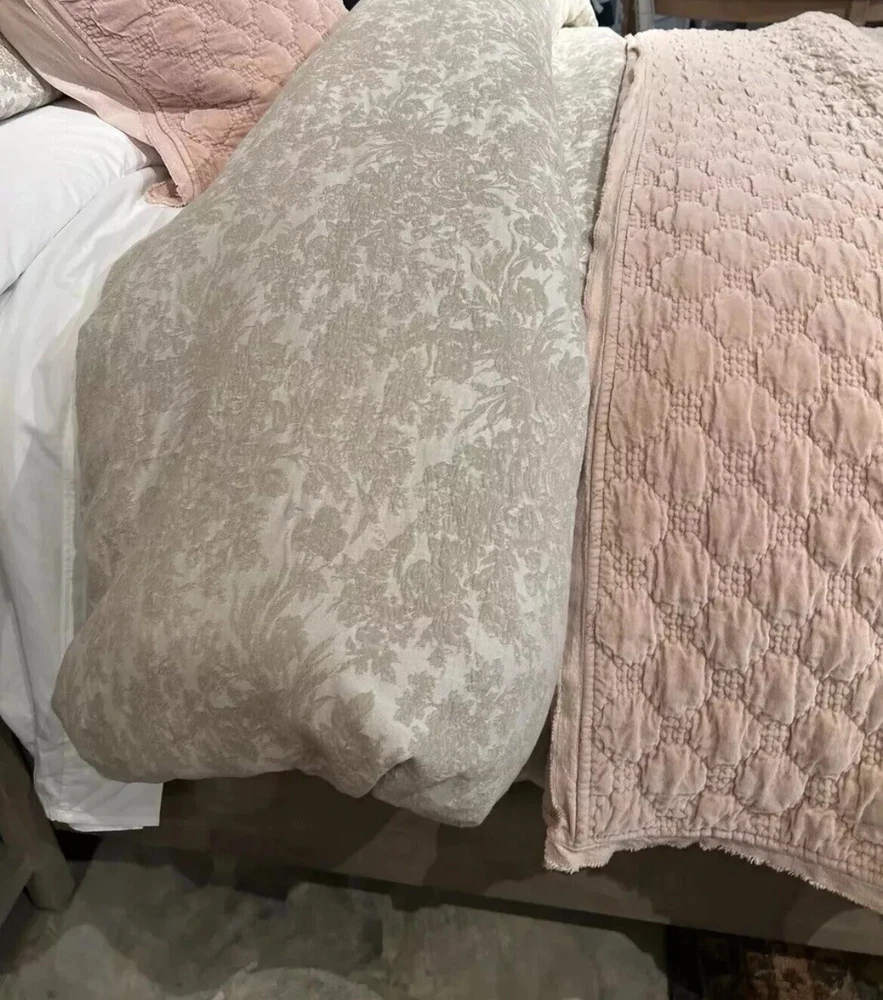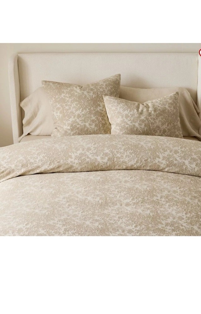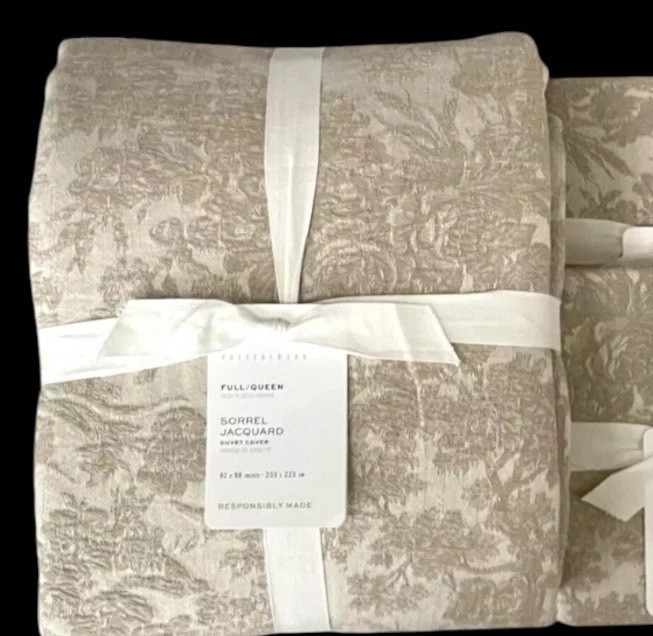 New Pottery Barn Sorrel Toile Jacquard Full / Queen Duvet &2 Euro Shams Flax Made from 100% cotton; reverses to 100% cotton sheeting. Reverses to solid color. OEKO-TEX® STANDARD 100: tested for 1000+ harmful substances. 14.HUS.42449 HOHENSTEIN HTTI. Made in a Fair Trade Certified™ factory, empowering workers who made it. By choosing our cotton products, you’re supporting our investment in Better Cotton’s mission. This product is sourced via mass balance and therefore may not contain Better Cotton. Duvet features a hidden button closure with inner ties that keep insert in place; sham features an envelope closure. Duvet cover and insert sold separately.