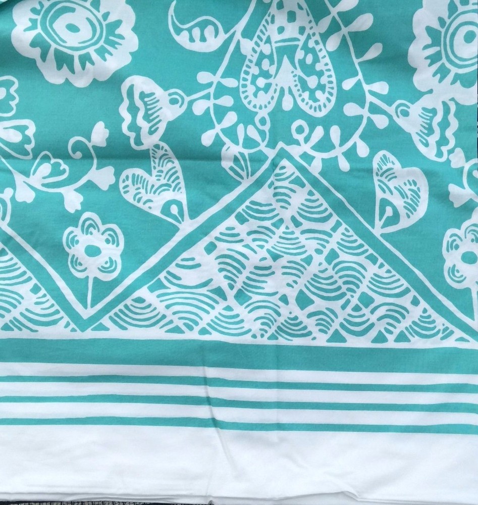 pottery barn teen PBteen Natalia Floral Duvet Cover only Size: queen 90 x 88" 100% printed cotton percale. Color: white, pool, see pictures Dress the bed with a fanciful flourish. Chains of baroque blooms stand out in bright white against the colorful cotton ground of our Natalia bedding. The duvet cover is bordered by stylized pyramids and crisp stripes. Duvet cover reverse to self. Machine wash. Imported. New in Original Packages from a smoke free, pet friendly home!
