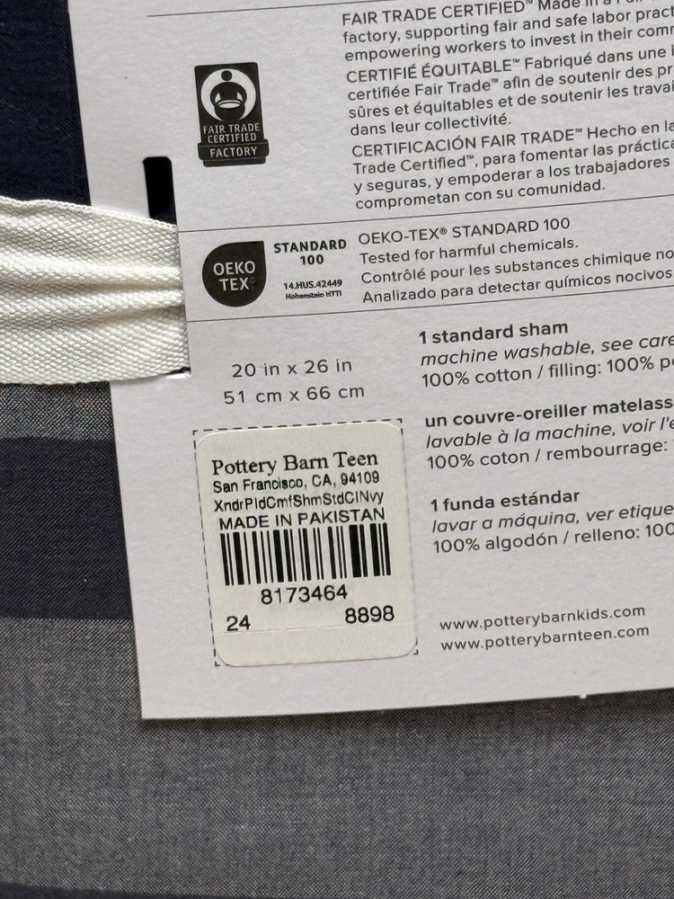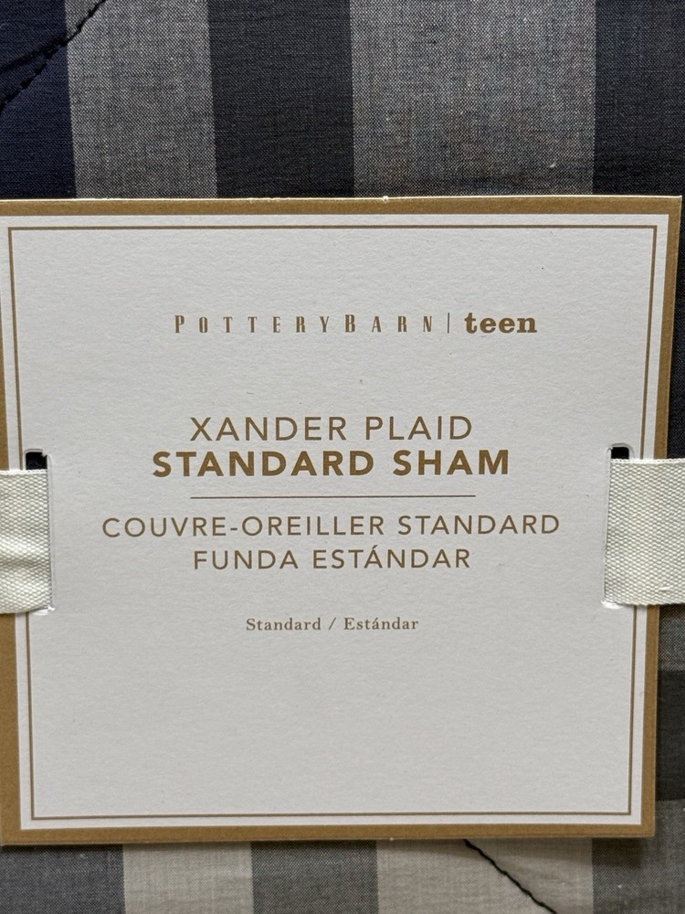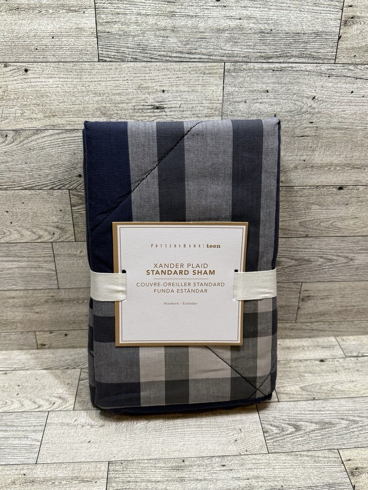 New Pottery Barn Teen Xander Plaid Standard Sham Classic Navy #8173464...