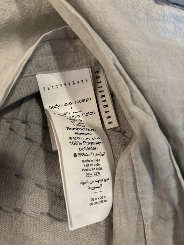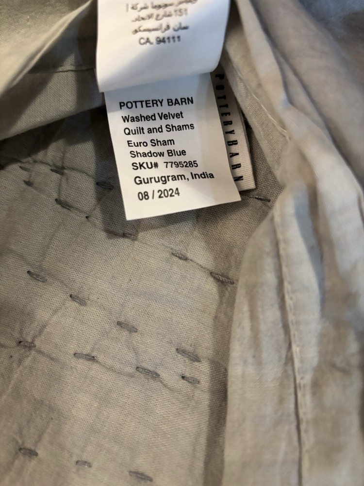 New Pottery Barn Washed Velvet Handcrafted Euro Sham, Shadow Blue Size: Euro Shams: 26" sq Quantity: 1 sham Color: Shadow Blue Open box item...