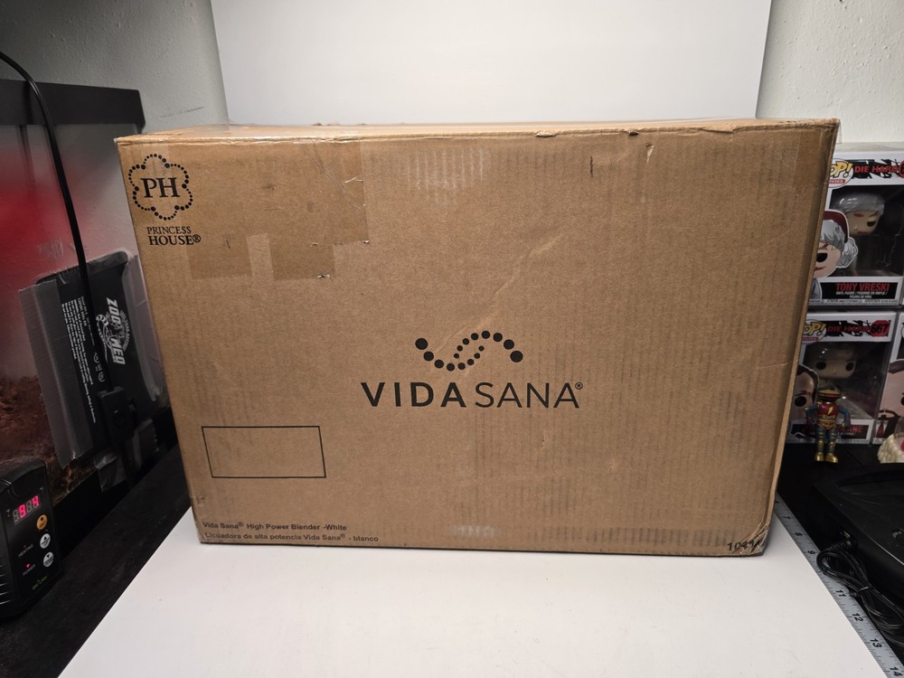 This is a new Princess House Vida Sana electric blender with a capacity of 68 oz. It has a power of 1500-watt and features high speed. The blender comes in white and has four modes for blending soup, juice, frozen drinks, dips and spreads, and smoothies. It is easy to clean and has a voltage of 110 V. The appliance includes a blender and has three settings/programs. The brand is Princess House and the model is Vida Sana Electrics. The blender is manufactured in China and is designed for countertop use in the kitchen.