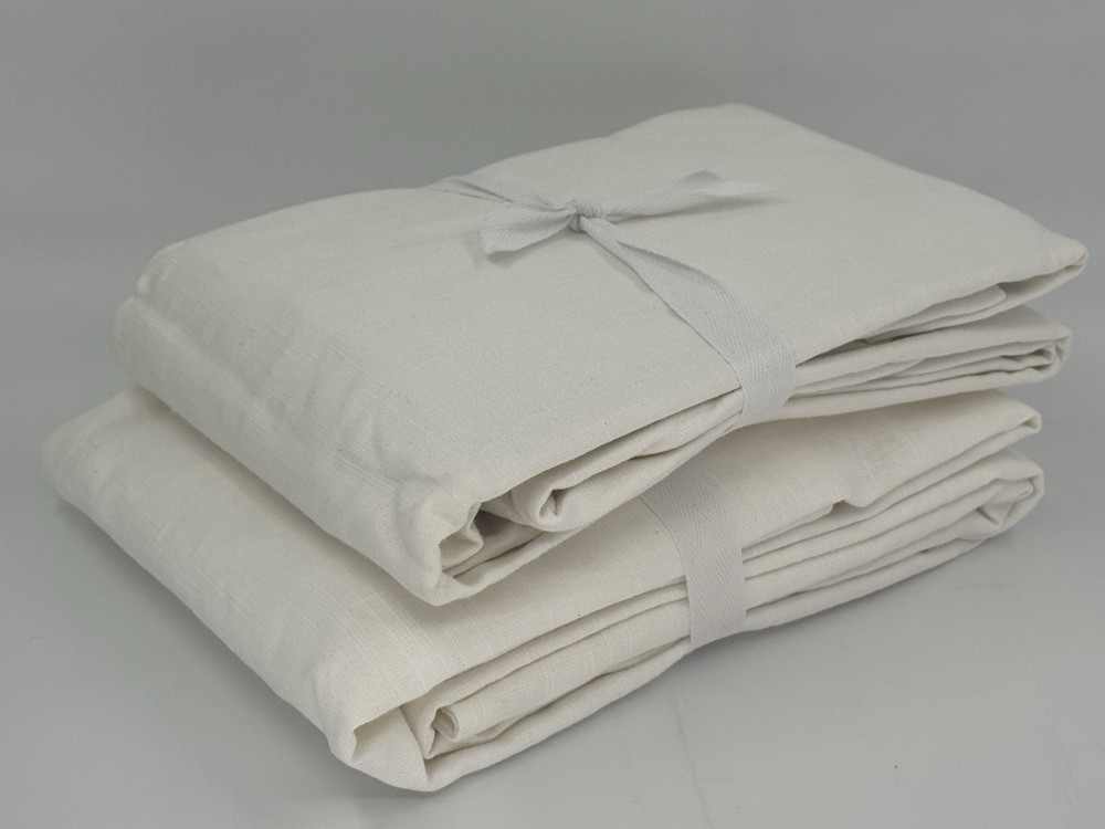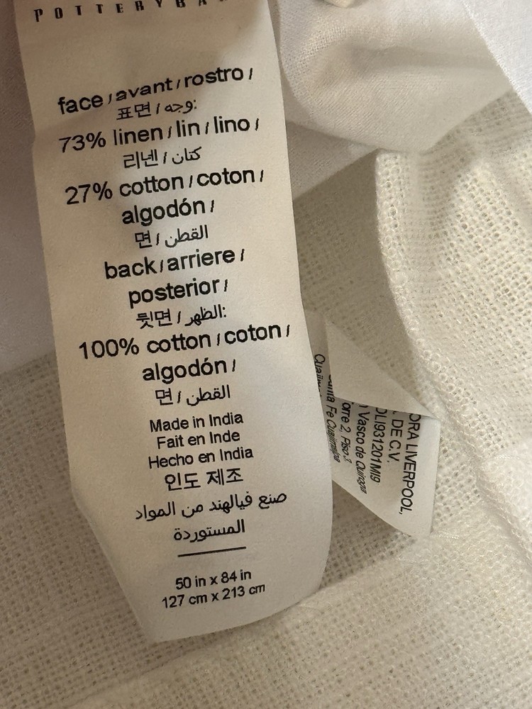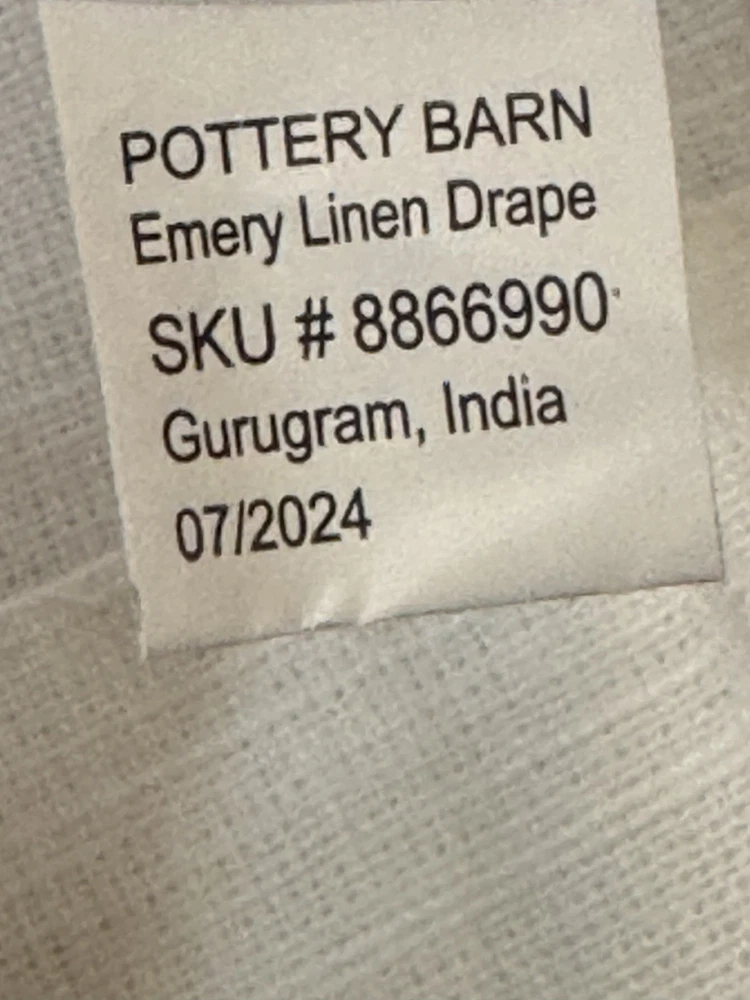 New Set/2 Pottery Barn Emery Linen Cotton Lined Curtain 50"x 84" White Drapery hooks are NOT included. This is an open box item. An Open Box item does not include any original packaging. Item is unused, but may arrive slightly more wrinkled than a packaged item and/or have stray hair or fibers. Made of a 73% linen and 27% cotton blend with metallic finish. Detailed with blind-stitched hems. Our curtain’s 3-in-1 construction offers three hanging options: rod pocket, back tabs, ring top. Curtain length includes height of rod pocket.