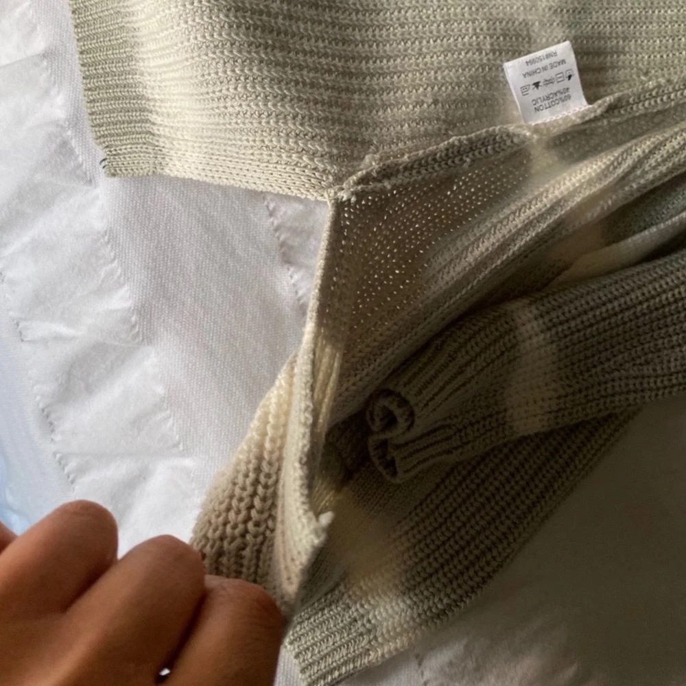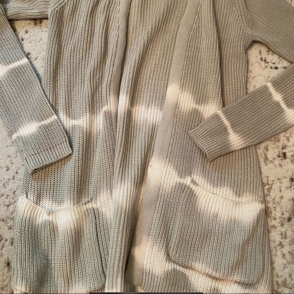 Brand new with tags unworn, light sage green dip dye cardigan with white horizontal stripes by Bellini. Open front & side bucket pockets. Side slits up the back seams of the cardigan. I just won’t get enough use out of this, because I live in the hottest state, no I should say most humid. I love it though. The color is exactly what drew me to it & the tie dye. Cotton/Acrylic Blend- 60%/40% Size Large BNWT