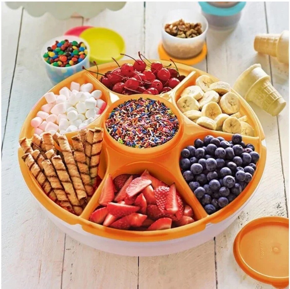 Tupperware Large Serving Center Orange / papaya 7 Serving Compartments - 13" Across 14 Ounce Dip Cup with Seal Dishwasher Safe From Smoke FRee Home Shipping Included