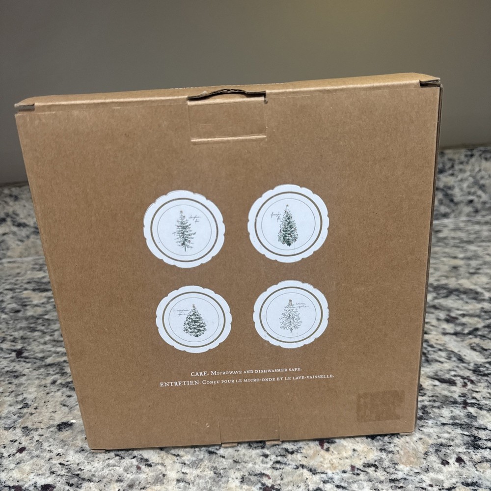 Set of 4 Christmas appetizer plates. New in box. Box has been opened to inspect pristine condition. Never used....