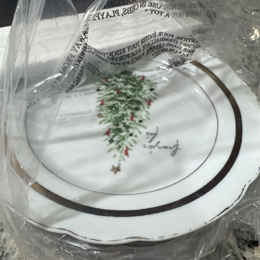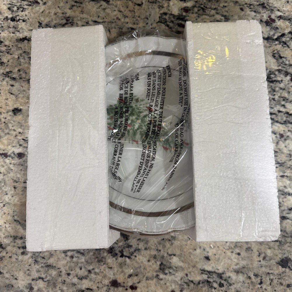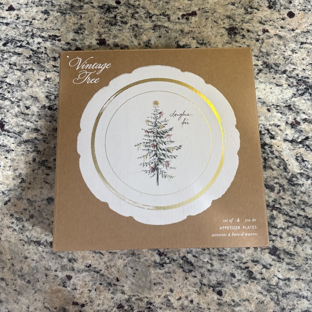Set of 4 Christmas appetizer plates. New in box. Box has been opened to inspect pristine condition. Never used.