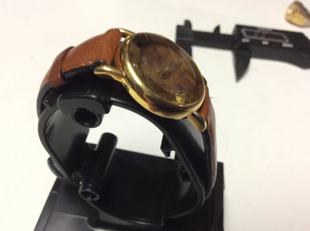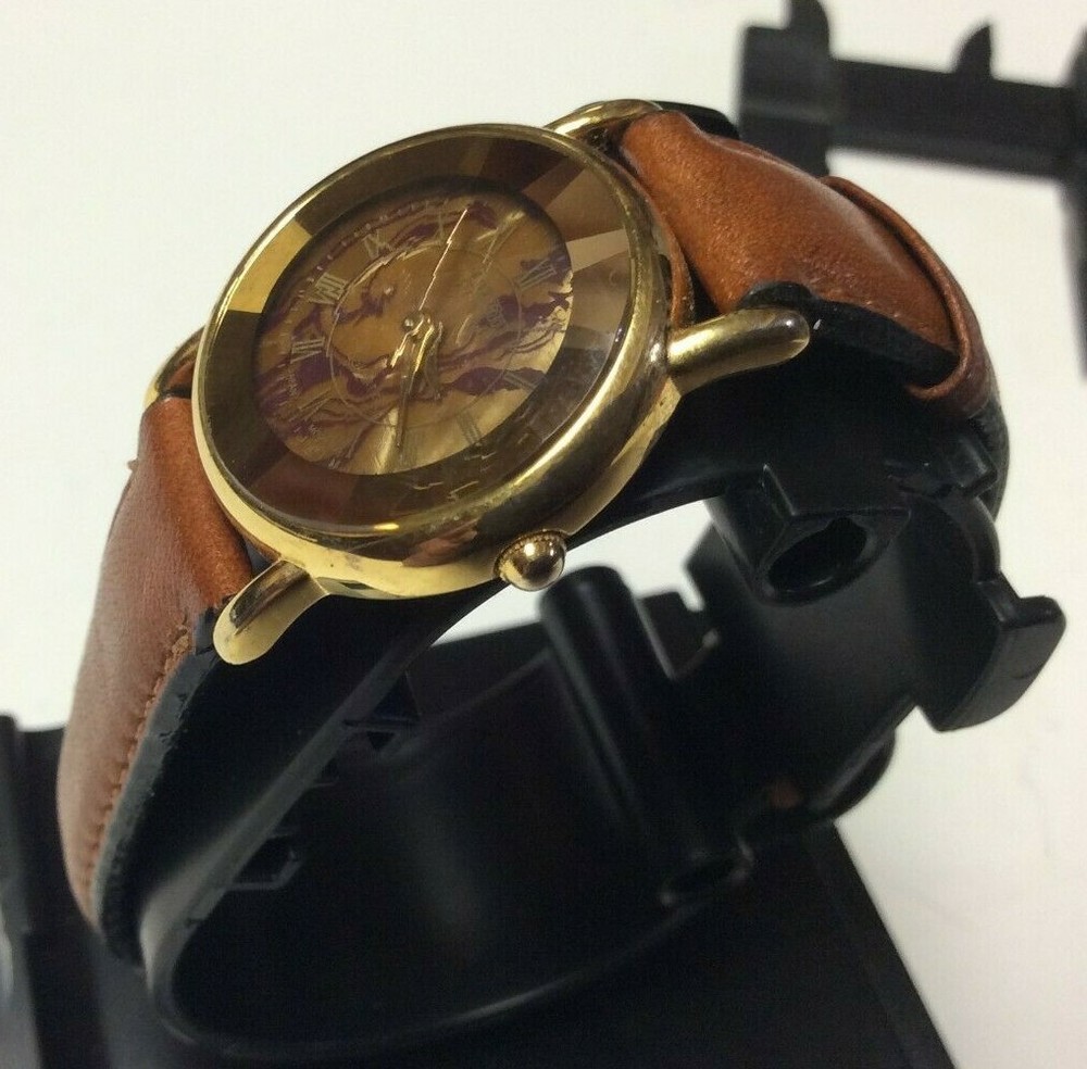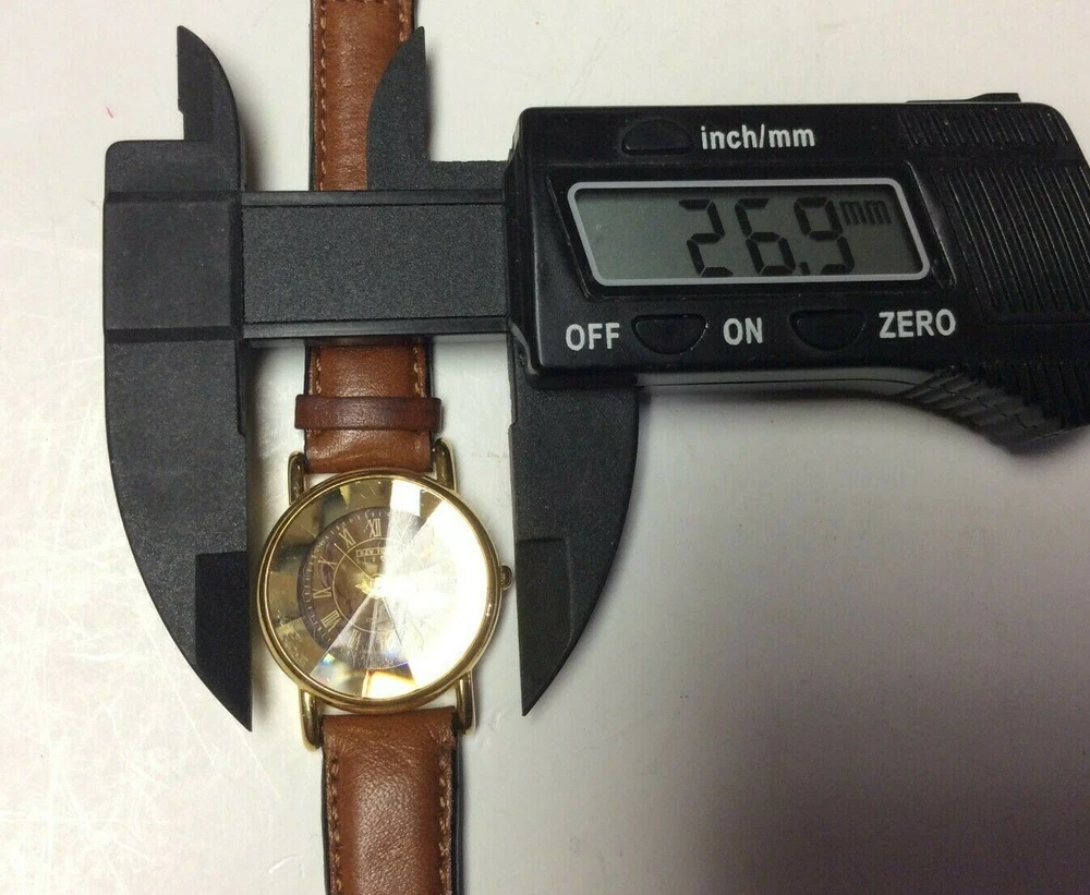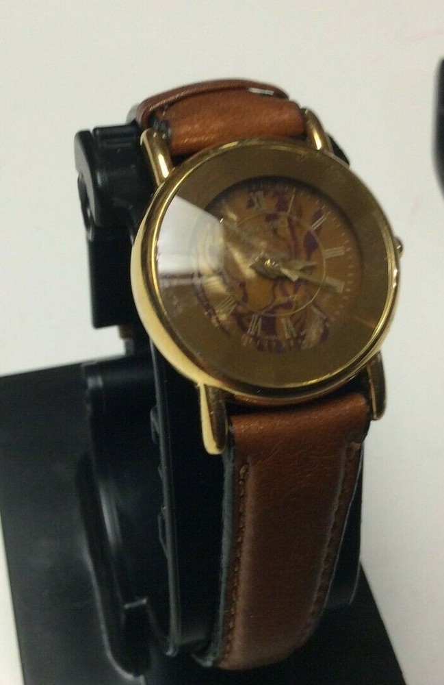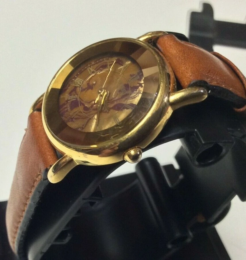 THANK YOU FOR SHOPPING AT HAROLDS TREASURES IF THERE ARE ANY ISSUES PLEASE MESSAGE ME DIRECT BEFORE OPENING A RETURN OR CONTACTING EBAY. IF YOU FIND THESE TERMS UNACCEPTABLE THEN WE ASK THAT YOU DO NOT PURCHASE ANY ITEMS FROM MY STORE. ITEM DESCRIPTION I TEM BRAND / NAME : New York Studios MOVEMENT : Very clean precision quartz with a new battery installed. The watch sets and keeps time as designed. DIAL : Round multi color dial that is very nice and unique signed New York Studios at the top. The dial is in perfect condition. CRYSTAL : Very clear diamond shaped crystal showing some minor surface marks and the dial is clearly visible. CASE: Shiny gold tone case with a silver tone snap down case back. The case shows some light and normal surface marks but n damage and it looks good. BAND: Higher end leather strap showing very little signs of ever being worn and in good ready to wear condition. Shipping info: We do not profit from shipping rates and when shipping our clocks and heavier items we use ebays “cost by location”. These rates are based off of weight and location with packing material included. We also combine shipping whenever possible.