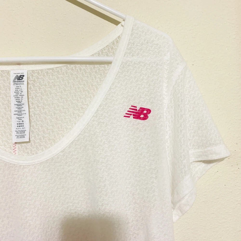 New balance Women White Pink Dip Dye Lightweight Short Sleeve Tee. In excellent condition Size L...