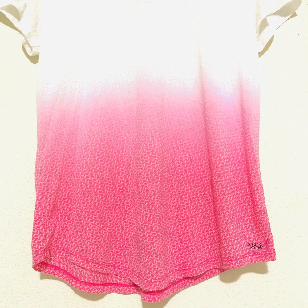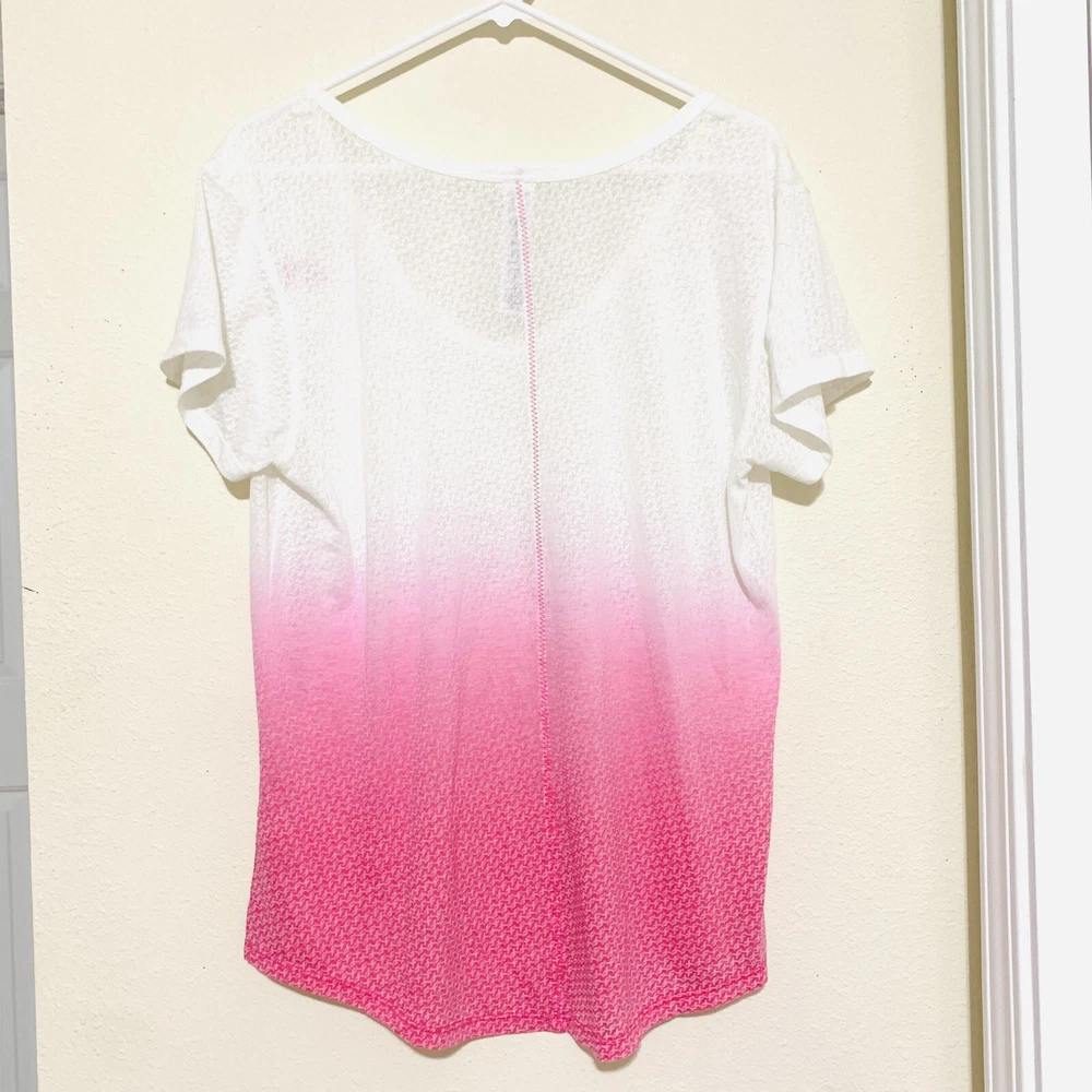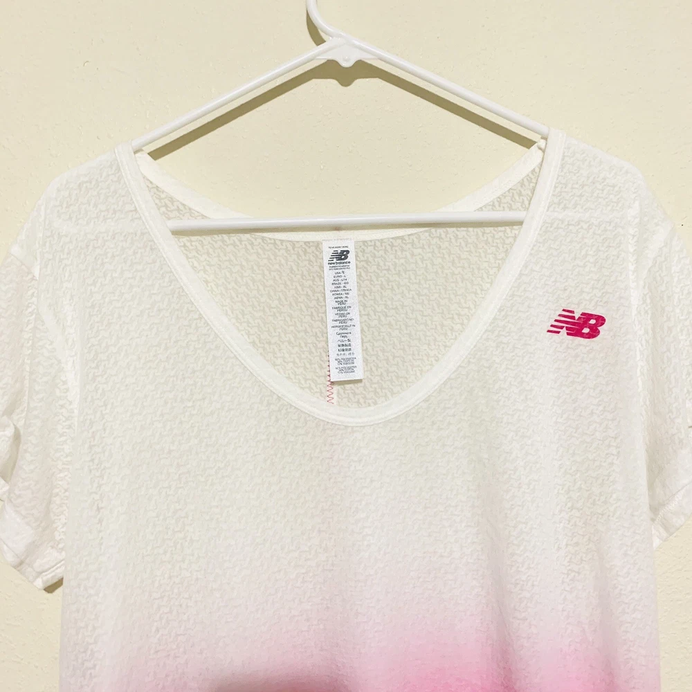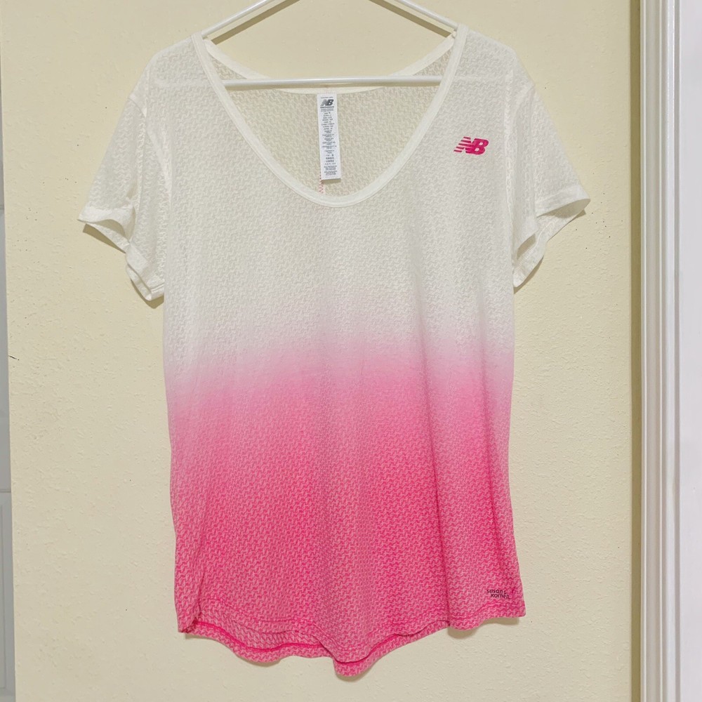 New balance Women White Pink Dip Dye Lightweight Short Sleeve Tee. In excellent condition Size L