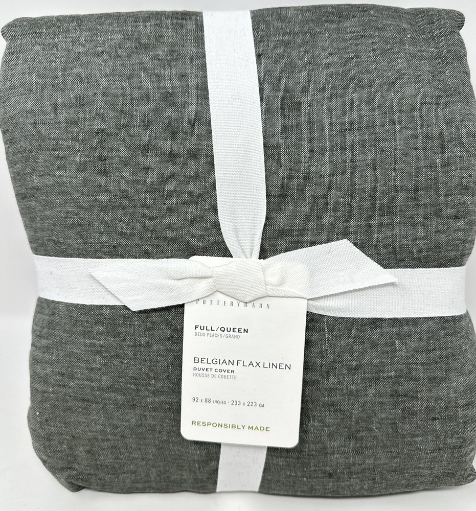 New~Pottery Barn~Belgian Flax Linen Duvet Cover~Full Queen~ Dark Forest Brand New Color: Dark Forest Size: Full Queen: 88x92” Duvet Cover Only Effortless, timeless, and made for layering, our linen bedding is the epitome of casual luxury. Woven from the world’s finest Belgian flax, it's prewashed for incredible softness that only gets better with time. One of our absolute favorite fabrics, linen keeps you cool when it’s warm and warm when it’s cold. Linen woven from 100% Belgian flax. Reverses to same. Prewashed for a supersoft hand feel. Ideal for warm or cool temperatures. Duvet features a hidden button closure with inner ties that keep insert in place Machine wash. Imported. CARE Linen will get softer with every wash. Please read our RETURN POLICY before you purchase: We take pride in our business, and we strive to do our best. We purchase brand new items and we do our best to give accurate descriptions and photos. If you have any questions about an item, please contact us through eBay prior to your purchase. We try our best to resolve any issues as fast as possible. If there are any issues with your item, please contact us right away. All items being returned must be returned with the price tag attached or new in package. No used items can be returned. When we receive the returned item, inspect it, and it is found to be in the same condition that we shipped it in (brand new, unused and in the original packaging) your refund will be given. The buyer is responsible for paying the return shipping. Thank you! Feedback: We strive to give you the best service. If you have any issues regarding your item, please contact us right away. Customer satisfaction is our priority. See my other listings for more great items! We accept Visa, Mastercard, Discover, American Express, Apple Pay and Google Pay. We will ship to the address provided at payment. We provide fast shipping! Your item will be shipped within 2 business days via UPS or USPS priority mail. Fed Ex and UPS can NOT deliver to PO boxes, so please provide us with a physical street address. Once your item is shipped, you will receive an email with your tracking number. Free Shipping is excluded for HI, PR and AK. Please email us for shipping rates to HI, PR and AK. Additional Shipping required for HI, PR and AK. Shipping rates don't include HI, PR and AK. Please contact us for shipping prices before you purchase. Thank you. txzj pxzj5515 txzj39